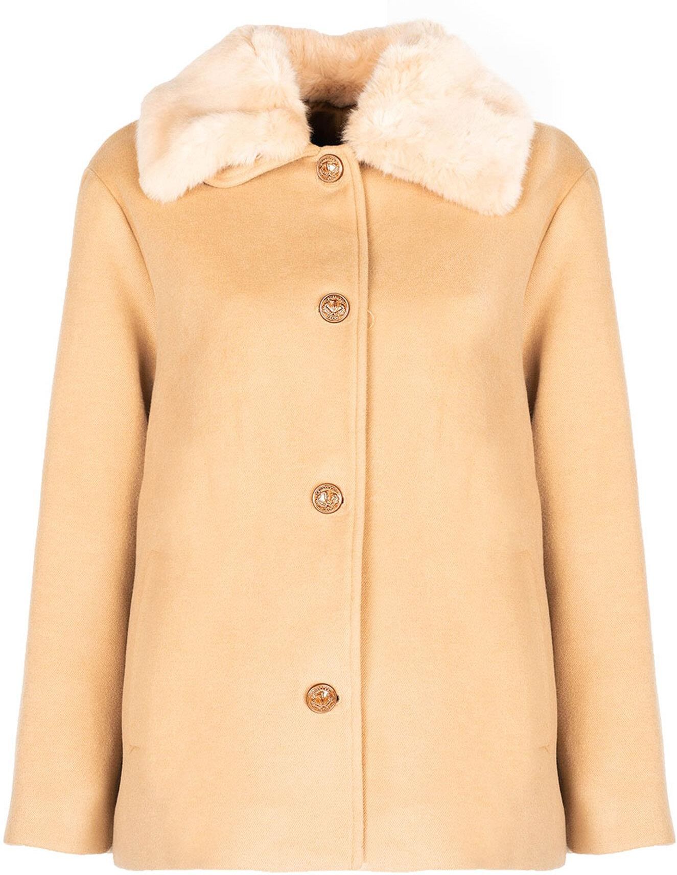 Prosty fason Z kołnierzykiem Na kołnierzu odpinane sztuczne futerko Zapinana na logowane guziki Z przodu dwie wpuszczone kieszenie Wykonana z wysokiej jakości tkaniny Wyprodukowano we Włoszech