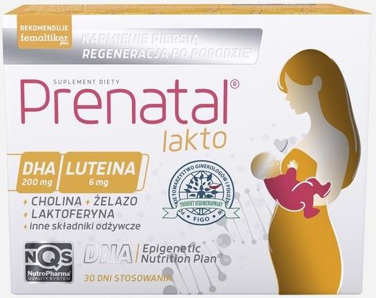 Prenatal Lakto CO WYRÓŻNIA NASZ PRODUKT 1✔️Kompleksowa formuła oparta na rekomendacjach ekspertów, zawierająca DHA, luteinę, cholinę, aktywny folian oraz witaminy B6 i B12 w odpowiednich dawkach. Wsparcie dla prawidłowego rozwoju mózgu, oczu i układu odpornościowego dziecka oraz zmniejszenie uczucia zmęczenia u matki. Bezpieczne i trwałe składniki, takie jak silikon i ABS, gwarantujące całkowite bezpieczeństwo podczas stosowania. Oparta na badaniach naukowych formuła Epigenetic Nutrition Plan® wykorzystująca zjawisko epigenetyki dla zapewnienia optymalnego rozwoju dziecka. ZAAWANSOWANA FORMUŁA DLA SILNIEJSZEJ WIĘZI MATKI I DZIECKA Prenatal® Lakto to wysokiej jakości suplement diety stworzony specjalnie dla kobiet karmiących piersią. Jego kompleksowa kompozycja składa się z kluczowych składników odżywczych, takich jak DHA, luteina, cholina oraz witaminy B6, B12 i aktywny folian w dawkach rekomendowanych przez ekspertów. Ich synergiczne działanie wspiera prawidłowy rozwój mózgu, oczu i układu odpornościowego Twojego maleństwa, budując tym samym solidne fundamenty dla jego przyszłego zdrowia. WYJĄTKOWA TROSKA O ZDROWIE MATKI I DZIECKA Ten innowacyjny suplement nie tylko dostarcza niezbędnych składników odżywczych dla prawidłowego rozwoju Twojego dziecka, ale także dba o Twoje samopoczucie w okresie połogu. Zawarte w nim żelazo, witaminy B6, B12 i folian pomagają zmniejszyć uczucie zmęczenia i znużenia, typowe dla tego wyjątkowego czasu w życiu każdej matki. Prenatal® Lakto to kompleksowe wsparcie dla Ciebie i Twojego maleństwa. BEZPIECZNA I NIEZAWODNA FORMUŁA Produkt ten wyróżnia się zastosowaniem jedynie najwyższej jakości składników, takich jak bezpieczny silikon i ABS, gwarantujących nie tylko trwałość, ale przede wszystkim całkowite bezpieczeństwo podczas użytkowania. Dzięki temu możesz cieszyć się tym wyjątkowym czasem bez obaw o swoje zdrowie i zdrowie Twojego dziecka. NAUKOWE PODEJŚCIE DO ZDROWIA Prenatal® Lakto to więcej niż zwykły suplement diety – to skuteczne narzędzie oparte na najnowszych badaniach naukowych. Formuła Epigenetic Nutrition Plan® zawarta w tym produkcie wykorzystuje zjawisko epigenetyki, pozwalając Ci wpływać na rozwój i zdrowie Twojego dziecka już od najmłodszych lat. To innowacyjne podejście do żywienia, które otwiera nowe horyzonty w dbaniu o przyszłość Twojego maleństwa. SPECYFIKACJA Postać: kapsułki Liczba sztuk: 60 szt. Marka: NutroPharma Przeznaczenie: dla kobiet karmiących EAN (GTIN): 5904161800996