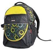 Plecak szkolno-sportowy. Posiada dwie komory oraz dwie kieszenie boczne, plecy oraz szelki plecaka są podszyte gąbką. Materiał: poliester.