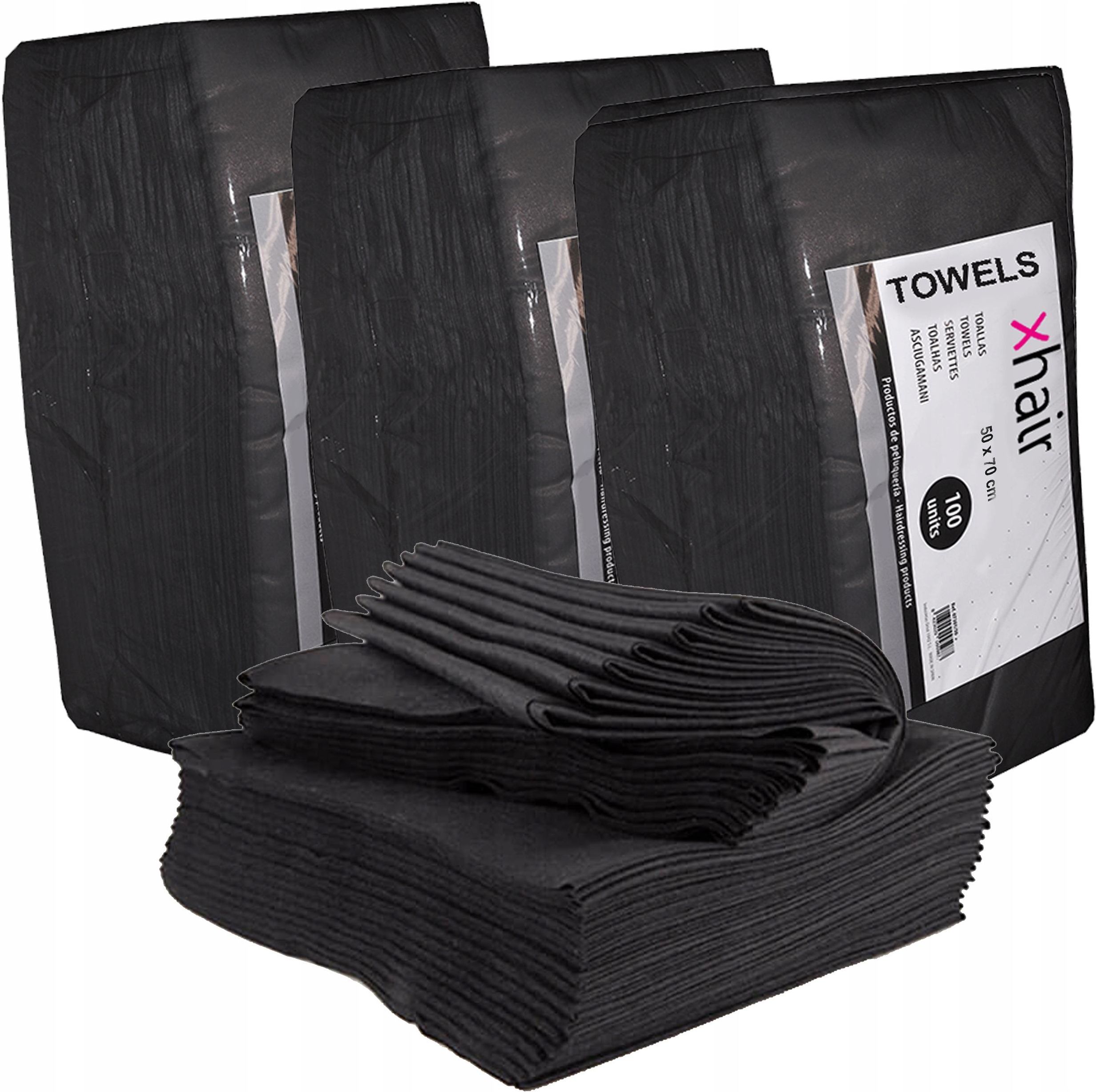 Xhair Ręczniki Fryzjerskie 70X50 Włóknina Czarne Jednorazowe 3X 100szt. Pobiedziska