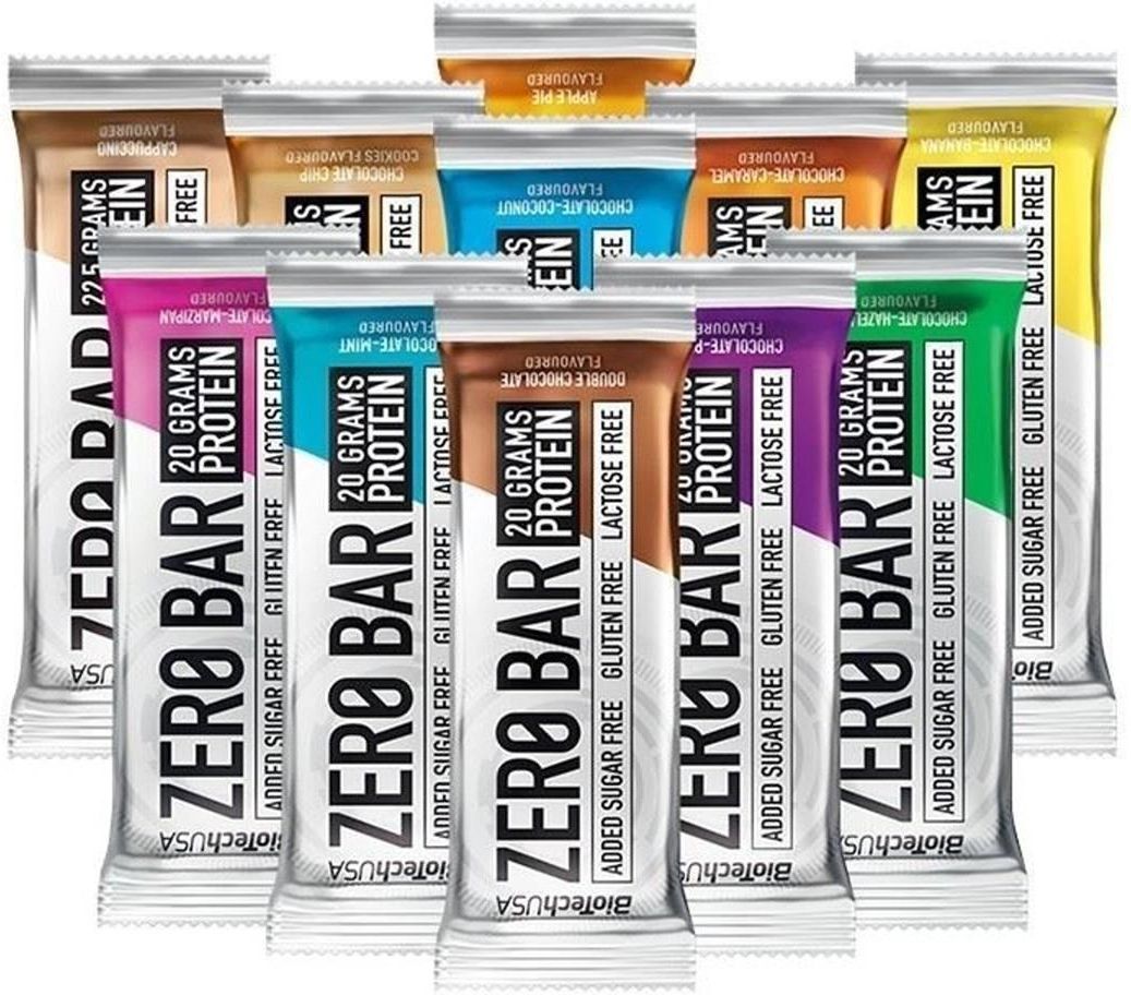 ocena Pozbawiony składników modyfikowanych genetycznie Bez aspartamu Wysoka wartość biologiczna, bardzo wysoka zawartość białka Ze stewią, sukralozą oraz alkoholami cukrowymi Wysoka zawartość błonnika pokarmowego Bez polewy niska zawartość węglowodanów ze zdrowymi tłuszczami nasyconymi (MCT) Z chrupiącą konsystencją proteinową W przyjemnych i wyjątkowych smakach. BATON PROTEINOWY? OWSZEM, ALE BEZ CUKRU! Lubisz batony proteinowe? Wypróbowałeś już wszystkie batony proteinowe dostępne na rynku i myślisz, że nie znajdziesz już nic nowego? W takim razie czas, byś poznał swojego nowego towarzysza: baton proteinowy Zero Bar. Jest całkowicie pozbawiony cukru, jest dostępny w przyjemnych, pysznych smakach, i możesz się nim cieszyć nawet, jeśli cierpisz z powodu nietolerancji laktozy lub glutenu. SPOŻYCIE WYSOKIEJ JAKOŚCI BIAŁKA SZYBKO I WYGODNIE Jeżeli uważasz za ważne spożywanie wysokiej jakości białek – z powodu uprawianego sportu, chęci zwiększenia masy mięśniowej, chęci zrzucenia zbędnych kilogramów lub dlatego, że nie jesz mięsa – możesz to zrobić szybko i wygodnie dzięki batonowi proteinowemu od BioTechUSA. Ponieważ białka wspomagają wzrost i utrzymanie masy mięśniowej oraz utrzymanie zdrowych kości. Jest polecany wszystkim, bez względu na wiek lub płeć. Jest istnym “białkiem na wynos”, więc możesz go zjeść gdziekolwiek i w jakiejkolwiek znajdujesz się sytuacji. Baton zawiera dodatkową witaminę E, która wspomaga ochronę komórek przed skutkami stresu antyoksydacyjnego. MAKSIMUM RADOŚCI Zero Bar od BioTechUSA jest batonem proteinowym z wyjątkową, 45% zawartością białka* oraz dużą ilością błonnika pokarmowego, z którego usunęliśmy wszystko, co zbędne; nie ma w nim glutenu, laktozy, sacharozy, aspartamu, ani składników modyfikowanych genetycznie. CZEKOLADA VS. BATON PROTEINOWY Poza wszystkimi zaletami, Zero Bar jest także doskonałą przekąską. Wysoka zawartość białka oraz niska zawartość węglowodanów sprawia, że jest doskonały dla osób będących na diecie, ponieważ, aby zgubić zbędne kilogramy należy uzupełniać dietę odpowiednią ilością wysokiej jakości białek. W przeciwieństwie do inne batonów, nie jest oblany polewą zawierającą dodatkowe kalorie, zachowując przy tym przyjemną, chrupiącą konsystencję. 1 baton (50 g) zawiera: 188 kcal 22.5 g białek* 6 g węglowodanów 0 g cukru 7.5 g tłuszczu 6 g błonnika 136 mg sodu 4.2 mg witaminy E *Średnia zawartość białka z wyłączeniem smaku doublechoco, który ma 42% (21 g) białka. Polecamy Zero Bar, jeśli: Potrzebujesz doskonałego i pysznego źródła białka dostępnego w każdym czasie i w każdej sytuacji. Po wysiłku fizycznym chcesz zjeść pyszny baton zawierający wysokiej jakości białko i nie zwierający cukru Poszukujesz smacznego białka nawet będąc na diecie Masz ochotę na zdrową przekąskę. Jesteś uczulony na gluten Jesteś uczulony na laktozę CZEMU POTRZEBUJESZ BIAŁEK? Białko jest najważniejszym budulcem twojego ciała, źródłem składników odżywczych, zbudowanym z aminokwasów produkowanych przez nasz organizm i dostarczanych ze źródeł zewnętrznych, które należy uzupełniać codziennie, aby zapewnić zdrowie swojemu organizmowi. Wspomaga utrzymanie masy mięśniowej, gdy trenujesz oraz wspomaga codzienną dietę. Gdy regularnie trenujesz, chcesz zwiększyć masę mięśniową oraz z wiekiem, twój organizm wymaga większej ilości białek. CZYM JEST NIETOLERANCJA LAKTOZY? Laktoza, znana także, jako “cukier mleczny” jest węglowodanem złożonym, stanowiącym ok. 2-3% suchej masy mleka. Laktoza jest nam potrzebna głównie w okresie niemowlęcym, dlatego nie jest rzadkością, że w okresie dorosłym twój organizm nie produkuje laktazy, enzymu odpowiedzialnego za rozbicie laktozy, co z kolei jest przyczyną jej nietolerancji. Dzisiaj niemal 75% populacji światowej cierpi z powodu nietolerancji laktozy. Podobnie jak wszystkie produkty BioTechUSA, Zero Bar składa się z bezpiecznych i starannie dobranych składników. sposób użycia 1 Zero Bar po treningu lub w ciągu dnia. składniki Smak truskawkowo-bananowy.SKŁADNIKI: Zero Protein Blend (izolat białka serwatki, izolat białka mleka, białko jaja), tłuszcz kokosowy, fruktooligosacharydy,substancja utrzymująca wilgoć (glicerol), substancje słodzące (maltitol, sukraloza, glikozydy stewiolowe),części chrupiące (hydrolizowany izolat białka sojowego, koncentrat białka serwatki), woda, aromaty, emulgator(lecytyna sojowa), substancje żelujące (karagen, chlorek potasu), substancja konserwująca (sorbinian potasu), octanDL-alfa-tokoferylu, barwnik: Czerwień Allura AC**. ** Czerwień Allura AC: może mieć szkodliwy wpływ na aktywności skupienie uwagi u dzieci. Spożycie w nadmiernych ilościach może mieć efekt przeczyszczający. Możliwa obecnośćmusztardy (gorczyca). Smak śmietankowo-brzoskwiniowy.SKŁADNIKI: Zero Protein Blend (izolat białka serwatki, izolat białka mleka, białko jaja), tłuszcz kokosowy,fruktooligosacharydy, substancja utrzymująca wilgoć (glicerol), substancje słodzące (maltitol, sukraloza, glikozydystewiolowe), części chrupiące (hydrolizowany izolat białka sojowego, koncentrat białka serwatki), woda, aromaty,emulgator (lecytyna sojowa), substancje żelujące (karagen, chlorek potasu), substancja konserwująca (sorbinianpotasu), wanilina, octan DL-alfa-tokoferylu, barwniki (tartrazyna**, Czerwień Allura AC**). **tartrazyna, CzerwieńAllura AC: Może mieć szkodliwy wpływ na aktywność i skupienie uwagi u dzieci. Możliwa obecność musztardy (gorczyca).Spożycie w nadmiernych ilościach może mieć efekt przeczyszczający Smak cytryny z bazylią. SKŁADNIKI:Zero Protein Blend (izolat białka serwatki, izolat białka mleka, białko jaja), tłuszcz kokosowy, fruktooligosacharydy,substancja utrzymująca wilgoć (glicerol), substancje słodzące (maltitol, sukraloza, gl
