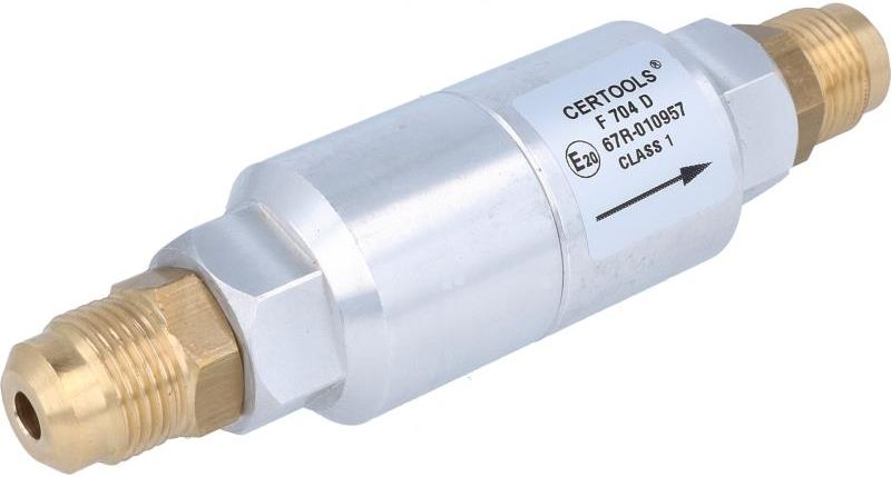 Opis produktu Filtr fazy ciekłej gazu LPG F-704-D firmy Certools. Opis zastosowania Zespół filtracyjny F-704 stosowany jest najczęściej w układach holenderskich gdzie stosowane są gwinty calowe, a także kempingach, kamperach, kuchenkach gazowych kompresorach oraz pojazdach wolnobieżnych. Dane techniczne Aluminiowy filtr z wymiennym wkładem (30.CRT.110) z brązu spiekanego, zakończenia mosiężne z gwintem zewnętrznym W21,8 i uszczelką. Maksymalne ciśnienie robocze: 3000 kPa, zakres temperatur pracy: od -20 stopni Celsjusza do +120 stopni Celsjusza. E20-67R-010957 Cechy produktu Wkład: ceramiczny Model filtra: F-704 Informacje dodatkowe Kod produktu Nagaz: 30.CRT.847 Producent: CERTOOLS Kod producenta: 0345704D-AL Numer homologacji: E20-67R-010957