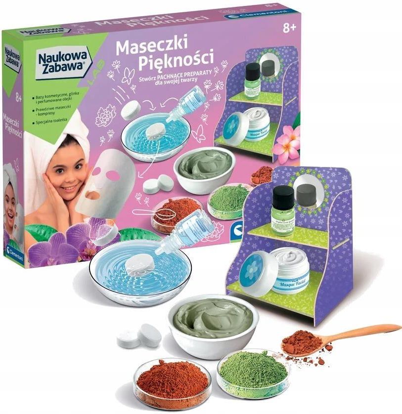 Maseczki Piękności Kosmetyki Dla Dzieci Studio 8+ Clementoni Oryginalny i ciekawy zestaw małego naukowca do tworzenia oryginalnych i delikatnych maseczek kosmetycznych. ⭐️ Zestaw zawiera wszystkie składniki niezbędne do przygotowania prawdziwych maseczek kosmetycznych, w tym zieloną glinkę, glinkę …