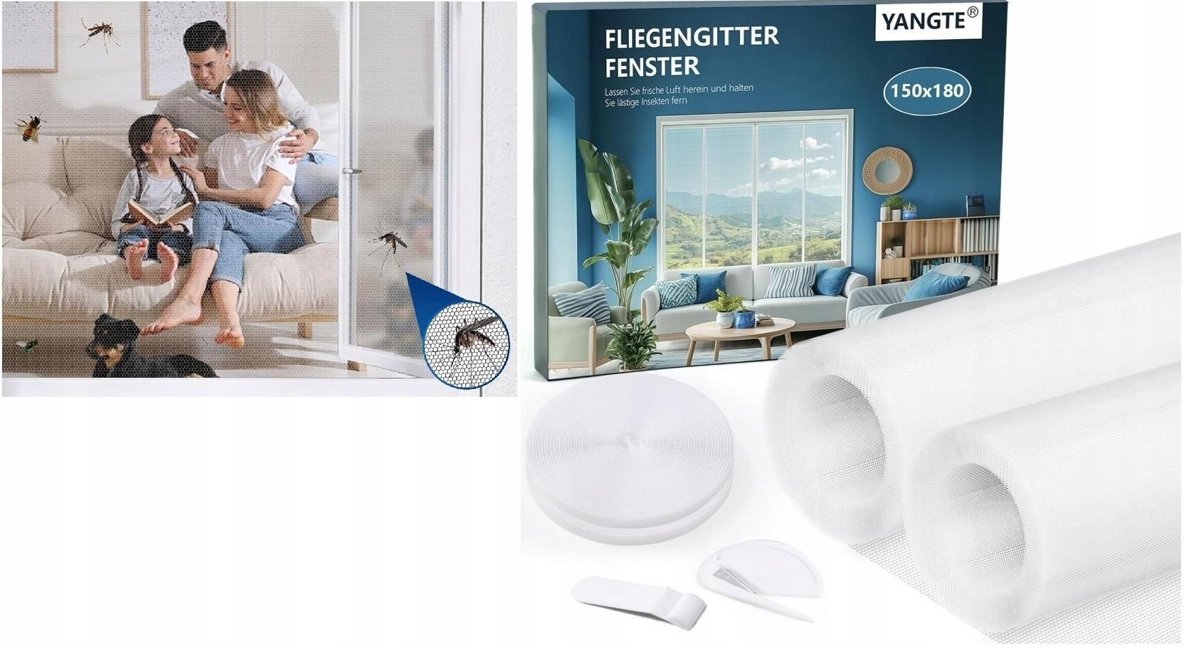 Moskitiera Na Okno Siatka Okienna Owady Komary Muchy 150x180 cm Taśma 2x Ciesz się świeżym powietrzem bez nieproszonych gości – zestaw dwóch wytrzymałych moskitier z ulepszoną taśmą o wzmocnionej przyczepności, która skutecznie blokuje owady, zachowując idealną cyrkulację powietrza! ✨ Moskitiera YANGTE o wymiarach 150 x 180 cm to niezawodny sposób na spokojny sen i komfortowy relaks w letnie dni. Dzięki gęstemu splotowi o oczkach mniejszych niż 1 mm, siatka stanowi nieprzebyty mur dla komarów, much, os i innych insektów. Zastosowanie wysokiej jakości poliestru sprawia, że materiał jest odporny na rozdarcia, blaknięcie oraz wysokie temperatury, a jednocześnie pozostaje niemal niewidoczny w oknie, nie ograniczając widoku ani dopływu światła do pomieszczenia. Kluczowym elementem zestawu jest ulepszona taśma typu rzep z termoodpornym klejem (do 100°C), która gwarantuje stabilne mocowanie na ramach wykonanych ze stali, drewna czy tworzywa sztucznego. System montażu "No Drilling" pozwala na zainstalowanie siatki w kilka minut bez użycia wiertarki, a dołączone narzędzie do dociskania zapewnia idealne przyleganie rzepu. Co ważne, taśmę można usunąć w dowolnym momencie bez pozostawiania nieestetycznych śladów kleju, co czyni ją idealnym rozwiązaniem również do mieszkań wynajmowanych. Dlaczego warto kupić? ✅ Zestaw 2-pak: Kompletny pakiet pozwalający na zabezpieczenie dwóch dużych okien w Twoim domu. ✅ Wzmocniona Przyczepność: Ulepszona taśma z rzepem trzyma mocniej i jest odporna na nagrzewanie się ramy okiennej. ✅ Montaż bez Wiercenia: Łatwa instalacja w kilka minut – idealna dla każdego, bez konieczności niszczenia okien. ✅ Maksymalna Ochrona: Oczka < 1 mm zatrzymują nawet najmniejsze muszki, zapewniając pełną drożność powietrza. ✅ Możliwość Docinania: Siatkę możesz dowolnie dopasować do rozmiaru swojego okna za pomocą dołączonego nożyka. Najważniejsze cechy produktu i specyfikacja ➡ Ilość w ofercie: 2 komplety (2x siatka + 2x taśma). ➡ Wymiary pojedynczej siatki: 150 x 180 cm. ➡ Materiał: Wytrzymały poliester (odporny na promieniowanie UV). ➡ Kolor: Biały (zapewnia jasność w pomieszczeniu). ➡ Sposób montażu: Samoprzylepny rzep (bezinwazyjny). ➡ Odporność termiczna: Taśma wytrzymuje do 100°C. Doskonale sprawdzi się w ➡️ Sypialni i salonie: Gwarantuje chłodne, przewiewne noce bez bzyczenia owadów. ➡️ Kuchni: Chroni żywność przed muchami i osami podczas gotowania przy otwartym oknie. ➡️ Domkach letniskowych: Szybki i tani sposób na zabezpieczenie okien przed insektami. ➡️ Pokojach dziecięcych: Bezpieczna bariera chroniąca maluchy przed bolesnymi ukąszeniami. Co w zestawie? ➡️ 2x Siatka moskitiera (150x180 cm) ➡️ 2x Rolka wzmocnionej taśmy z rzepem ➡️ 1x Narzędzie do dociskania siatki ➡️ 1x Nożyk do precyzyjnego docinania Zamów już dziś i odkryj wygodę życia w domu wolnym od owadów z zestawem YANGTE, który zapewni Ci świeże powietrze, bezpieczeństwo i spokój przez cały sezon letni! ✨