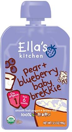 Ella's Kitchen BIO Śniadanie Jagoda i gruszka, 100 g Przekąska mleczno-owocowa dla niemowląt i małych dzieci od ukończonego 6 miesiąca życia. Pasteryzowany. Najlepszy start na nowy dzień, to właśnie takie śniadanie – pełne dojrzałych jagód, pachnących gruszek i wysokiej jakości jogurtu z odrobiną …
