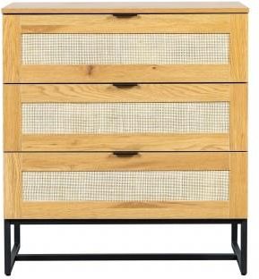 %description% WYMIARY Wysokość: 90 cm Szerokość: 80 cm Głębokość: 40 cm MATERIAŁY: Płyta MDF Metal Komoda Capri to niebanalne połączenie ratanowej plecionki boho z metalową konstrukcją w industrialnym stylu. Komoda wykonana została z niezwykle wytrzymałej płyty MDF pokrytej fornirem imitującym …