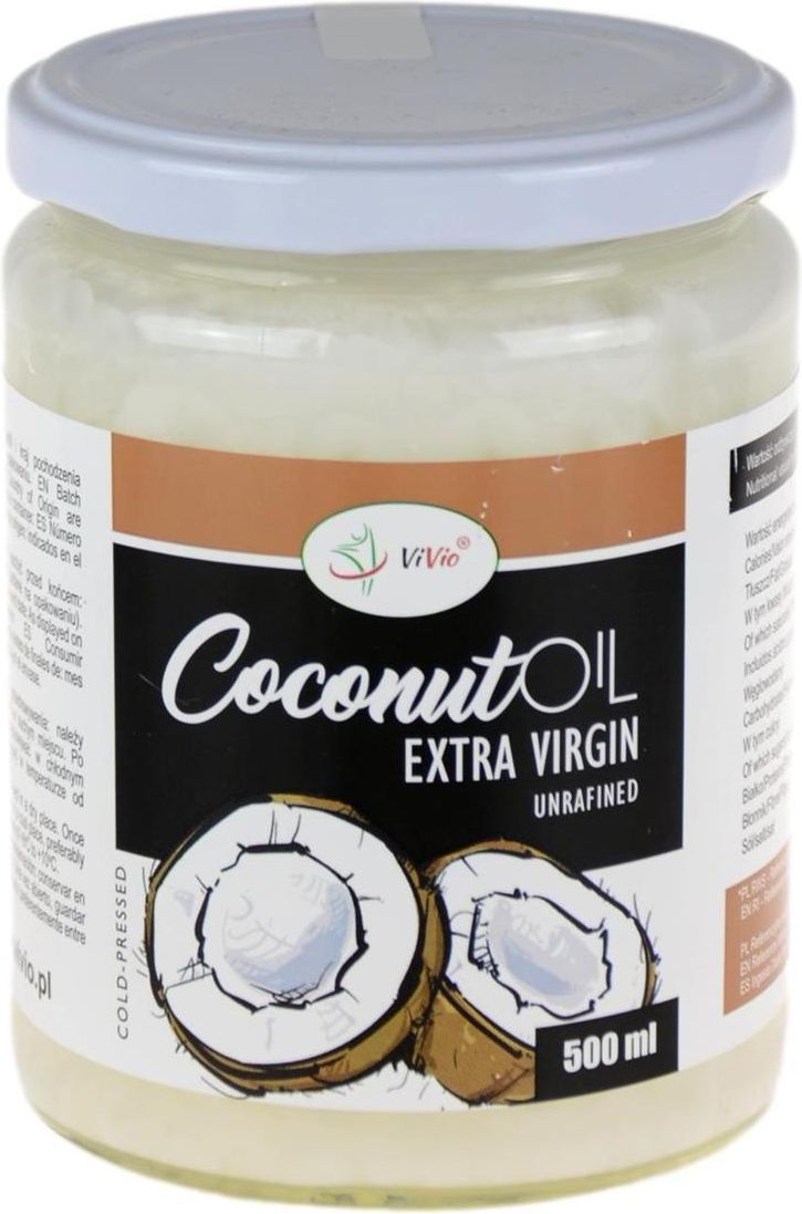 Wszystko co warto wiedzieć na temat wartości odżywczych oraz właściwości zdrowotnych oleju kokosowego virgin Olej kokosowy virgin pojawił się na naszym rynku stosunkowo niedawno. Niemniej jednak, od początku zyskał szerokie zainteresowanie, nie tylko w gronie miłośników eksperymentów kulinarnych, ale również znawców zdrowego stylu życia. Produkt ten charakteryzuje się wyjątkową zawartością średniołańcuchowych kwasów tłuszczowych, których spożywanie w odpowiedni sposób może przyczynić się do wzmocnienia naszej odporności. Ponadto, olej kokosowy virgin uznawany jest za cenny składnik kosmetyczny. Niektóre źródła donoszą również, iż może on wspomagać proces odchudzania. A co jeszcze warto wiedzieć na temat nierafinowanego oleju kokosowego? Odpowiedź na to pytanie znajdziesz w dalszej części tekstu. Skąd pochodzi i czym charakteryzuje się olej kokosowy virgin Vivio 900 ml? Olej kokosowy virgin – właściwości i wpływ na zdrowie człowieka; Jak olej kokosowy virgin działa na skórę i włosy; Odchudzanie a olej kokosowy virgin; Olej kokosowy virgin nierafinowany – przeciwwskazania dotyczące stosowania; Olej kokosowy virgin – cena; Odpowiadamy na najczęściej zadawane pytania dotyczące oleju kokosowego virgin: Gdzie kupić olej kokosowy virgin? Olej kokosowy virgin, co to znaczy? Czy można smażyć na oleju kokosowym virgin? Jak przechowywać olej kokosowy virgin? Olej kokosowy rafinowany, czy nierafinowany – który z nich warto wybrać? Olej kokosowy virgin – kcal; Zastosowanie oleju kokosowego nierafinowanego w kuchni i nie tylko; Olej kokosowy virgin – przepisy. Skąd pochodzi i czym charakteryzuje się olej kokosowy virgin Vivio 900 ml? Olej kokosowy virgin pozyskiwany jest z owoców palmy kokosowej. Ta jednoliścienna roślina w naturalnych warunkach występuje na terenie Indonezji, Malezji oraz Filipin. Co ciekawe, wraz ze wzrostem zainteresowania produktami pochodzącymi z palmy kokosowej, istotnie wzrosła liczba jej upraw na całym świecie. Niniejsze drzewo we współczesnych czasach możemy spotkać nie tylko na terenie wyżej wymienionych krajów, ale również w Afryce Zachodniej. Choć w Polsce stosunkowo od niedawna doceniane są niezwykłe właściwości kokosów, pierwsze wzmianki na temat ich „cudownych mocy” możemy znaleźć w starożytnych sanskrytach indyjskich. Warto wiedzieć, iż mieszkańcy wysp Pacyfiku, po dziś dzień postrzegają owoce pochodzące z plamy kokosowej za lekarstwo na wszelkie dolegliwości zdrowotne. Palma kokosowa może osiągać wysokość nawet 20-25 metrów, a jej liście około 3-6 metrów. Owocem niniejszego drzewa jest orzech kokosowy o średnicy około 25 centymetrów i wadze nawet 8 kilogramów. Podczas wyrobu oleju kokosowego wykorzystywany jest miąższ kokosa, który charakteryzuje się słodkim smakiem oraz zawartością cennych dla naszego zdrowia i urody kwasów tłuszczowych. Warto również wiedzieć, iż w orzechu znajduje się mleko kokosowe stanowiące niezrównane źródło elektrolitów. W składzie oleju kokosowego nierafinowanego znajdziemy zarówno kwas laurynowy, mirystynowy, palmitynowy, stearynowy, arachidowy oraz kwas kapronowy, kaprylowy i kaprynowy. Ponadto, produkt ten zawiera w sobie nienasycone kwasy tłuszczowe, w tym: Kwas oleinowy; Kwas eikosanowy; oraz Kwas linolowy. Olej kokosowy virgin charakteryzuje się białą barwą oraz słodkawym, mocno kokosowym smakiem. W temperaturze poniżej 25oC przybiera on stałą postać, jednak w temperaturze wyższej zaczyna zamieniać się w przejrzysty, lekko białawy płyn. Ze względu na swój skład oraz niewątpliwe walory smakowe, olej kokosowy znalazł szerokie zastosowanie zarówno w kuchni, jak i kosmetyce. Ponadto, produkt ten niejednokrotnie wykorzystywany jest w dietoterapii określonych zaburzeń stanu zdrowia. Olej kokosowy virgin – właściwości i wpływ na zdrowie człowieka Właściwości zdrowotne oleju kokosowego wzbudzają stałe kontrowersje oraz niesłabnące zainteresowanie w gronie naukowców oraz specjalistów z dziedziny zdrowego żywienia. W związku z tym, w literaturze możemy znaleźć sprzeczne informacje, jak również liczne badania dotyczące wpływu niniejszej substancji na organizm człowieka. Największe niezgodności zdaje się wzbudzać wysoka zawartość nasyconych kwasów tłuszczowych. Niemniej jednak, te znajdujące się w oleju kokosowym charakteryzują się średnią długością łańcuchów, co sprawia, iż nie wykazują one aż tak szkodliwego wpływu na układ krążenia człowieka, jak nasycone kwasy tłuszczowe zawarte w tłuszczach zwierzęcych. Ważne jest jednak, aby spożywać olej kokosowy z należytą ostrożnością, wówczas może on wywrzeć pozytywny wpływ na organizm i samopoczucie człowieka. Niektóre badania i obserwacje naukowe zwracają uwagę na fakt, iż olej kokosowy (w połączeniu ze zrównoważoną dietą oraz systematyczną aktywnością fizyczną) stanowi skuteczny element profilaktyki nadwagi i otyłości. Ponadto, substancje zawarte w składzie niniejszego oleju mogą wykazywać silne działanie antybakteryjne, jak również grzybobójcze i wirusobójcze. Naukowcy z irlandzkiego Instytutu Technologicznego wykazali również, iż nierafinowany olej kokosowy może zapobiegać rozwojowi próchnicy oraz innych infekcji w obrębie jamy ustnej. Badania opublikowane w specjalistycznym magazynie "Journal of Medicinal Food" pochodzące z 2007 roku wskazują, iż odpowiednio stosowany olej kokosowy może wspomagać proces leczenia grzybicy stóp. Wszystko to za sprawą jego właściwości, które odpowiedzialne są za zwalczanie szkodliwych grzybów z rodziny Candida. Co ciekawe, średniołańcuchowe kwasy tłuszczowe, występujące w składzie oleju kokosowego, mogą wpływać na zwiększenie efektywności leczenia zaburzeń neurodegeneracyjnych (takich jak: choroba Parkinsona, czy choroba Alzheimera). Okazuje się bowiem, iż spoży