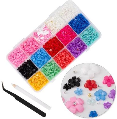 Kasetka z ozdobami kwiatki BKHZ-015 Dodaj paznokciom efektu WOW dzięki zestawowi ozdób 3D zamkniętemu w praktycznej kasetce z przegródkami. Różnorodne kształty, kolory i wykończenia pozwalają tworzyć unikalne stylizacje – od subtelnych po efektowne. Cechy produktu: Ozdoby 3D do paznokci (ok. 1000 sztuk). Zestaw bogaty w różne kształty: perełki, cyrkonie, kokardki, serca, kwiaty, bulion i inne (w zależności od wariantu). Ozdoby wykonane z wytrzymałego materiału. Uniwersalne zastosowanie do różnych technik stylizacji (żelowej, hybrydowej, akrylowej). Różnorodna kolorystyka: odcienie pastelowe, perłowe, transparentne, metaliczne (w zależności od wariantu). Praktyczna kasetka z przegródkami – łatwe przechowywanie, organizacja i użytkowanie. Pęseta i kredka do aplikacji – wygodna i precyzyjna praca bez bałaganu. Lekka forma – komfort noszenia na paznokciach. Ozdoby sprawdzą się na co dzień i na wyjątkowe okazje okolicznościowe. Sposób użycia: Wykonaj stylizację dowolną metodą (hybrydową, żelową, acrygelową, akrylową). Do mocowania ozdób rekomendujemy bezbarwną bazę SOS Therapy Molly Nails. Użyj pęsety lub kredki, by umieścić ozdobę w wybranym miejscu. Utwardź w lampie 30-60 sek. W razie potrzeby zabezpiecz ozdoby dodatkową warstwą topu.