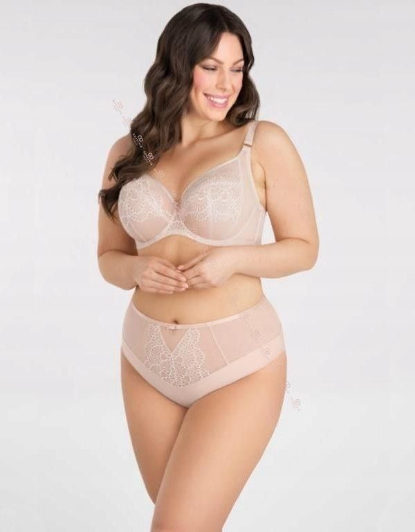 Gorsenia Figi K856 Kolor(beżowy) Rozmiar(M) GOS-FIG-000M-BEŻ-K856 Figi damskie z wysokim stanem. Zabudowany fason zasłaniający prawie całe pośladki. Wykonane z tiulu elastycznego w połączeniu z kryjącą microfibrą i haftem. Tył z tiulu elastycznego wykończony na gładko, tak aby majtki nie odznaczały się pod ubraniem. Bawełniany kroczek. W pasie połyskująca taśma elastyczna. Skład: 90% poliamid, 7% elastan, 3% poliester Parametry Gatunek: L,M,XL,XXL,XXXL Kolor: beżowy