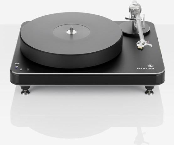 Specyfikacja Rodzaj mechaniki gramofonu manualny Rodzaj napędu paskowy Obsługiwane prędkości odtwarzania 33, 45, 78 Rodzaj zamontowanego ramienia proste Wbudowany przedwzmacniacz gramofonowy nie Wyjścia dodatkowe nie Bluetooth nie Koszyczek (Headshell) wymienny nie Kabel RCA wbudowany Pokrywa w zestawie nie Zasilanie zewnętrzne (zasilacz) Wyłącznik krańcowy nie Sekcja ramienia Typ wkładki MC Stosunek sygnał/szum 20 Hz – 100 kHz Zasilanie Pobór mocy (max) 8.6 Pobór mocy (standby) 2.5 Ogólne Wymiary (S x W x G) mm 420 x 135 x 350 Waga kg 13.5 Ovation łączy ponadczasowość z minimalizmem. Model ten bez żadnych dodatkowych zabiegów gwarantuje maksymalną przyjemność muzyczną. Swoją wysoką jakość model Ovation zawdzięcza m.in. doskonałej obudowie. Wewnątrz precyzyjnie wykonanej podstawie składającej się z warstwy aluminium i kuloodpornego drewna panzerholz, 100 tys. maleńkich metalowych kuleczek eliminuje jakąkolwiek możliwość powstawania szkodliwego rezonansu. Pod talerzem o grubości 40 mm, wykonanym z tłumiącego rezonans materiału POM, pracuje odprzężony, bardzo cichy silnik prądu stałego. Ten ostatni element wyróżnia się wysokim momentem obrotowym. Dzięki optycznej kontroli prędkości (OSC) Clearaudio i ceramicznemu łożysku magnetycznemu (CMB), Ovation zapewnia najwyższą stabilność prędkości i na nowo określa standard w swojej klasie. Potwierdzeniem najwyższej jakości modelu Ovation jest tytuł „Gramofon roku”, którym uhonorowała go redakcja magazynu audio „Absolute Sound”.