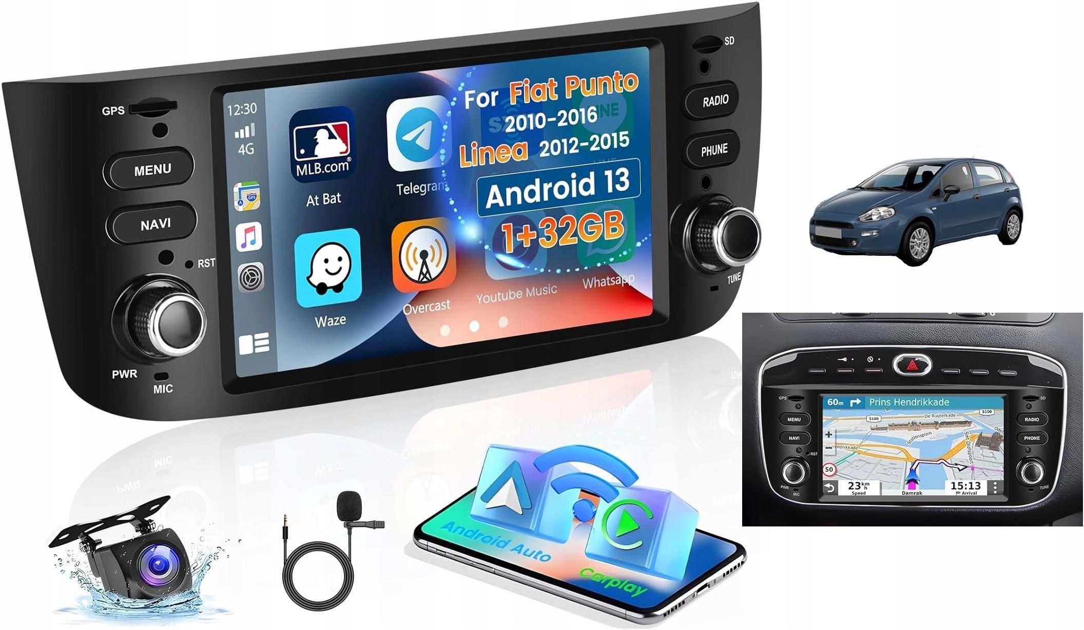 Radio Nawigacja GPS Android Fiat Punto 2010-2016 Linea 2012-2015 1/32GB Zdjęcie Ostatnie jest zdjęciem realnym. Zmień wnętrze swojego Fiata w centrum multimedialne – nowoczesne radio z Androidem, bezprzewodową obsługą CarPlay i Android Auto oraz kamerą cofania w zestawie! ✨ Radio samochodowe …