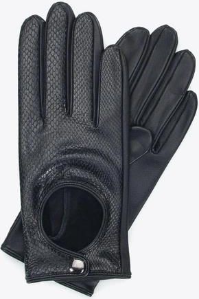 Damskie rękawiczki samochodoweTe stylowe damskie rękawiczki urozmaicą każdą Twoją stylizację. Przód wykonany jest z połyskującej skóry o fakturze lizard, tył natomiast wykończono gładką skórą naturalną. Krótki fason z zapięciem na nadgarstku to świetny wybór na wiosnę i jesień. Ten model będzie świetnie wyglądał do kurtki lub płaszcza z rękawem ¾ , ukazując część przedramienia wraz z zegarkiem i biżuterią. Damskie rękawiczki samochodowe ze skóry lizard to oryginalny dodatek, który warto mieć w swojej szafie. Nasza rada: noś je do skórzanej ramoneski i podkreśl ich rock and rollowy charakter Rozmiar XS S M L XL Długość (cm) 23,8 24,3 24,8 25,3 25,8 Szerokość (cm) 8,7 9 9,3 9,6 9,9 Długość śr. palca (cm) 8 8,2 8,4 8,6 8,8 Tolerancja: max. 0,5 cm w długości i max. 0,3 cm w pozostałych wymiarach. Informacje dodatkowe: materiał: skóra naturalna rodzaj: samochodowe rozmiar: S długość: 24,3 szerokość: 9 długość środkowego palca: 8,2 2 lata gwarancji producenta