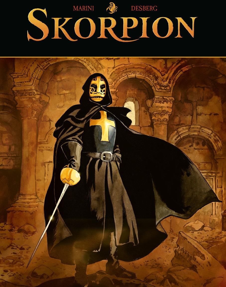 POPKulturowy Kociołek: W albumie Skorpion tom 2 znajdziemy trzy oryginalne historie z tytułowym awanturnikiem w rolach głównych. Są nimi tomy: Demon w Watykanie, Święta Dolina i Skarb Świątyni. Ich tytuły dość jasno precyzują, że w fabule ważną rolę odgrywa między innymi obsada tronu Piotrowego (po zamordowaniu ukochanego przez lud papieża) oraz ogólna sytuacja w Rzymie, która ma wyraźny i mocny wpływ na całą Europę. Oczywiście pośrodku tego całego historycznego szaleństwa znajduje się Skorpion, który nie stroni od kłopotów, ale na swoje szczęście potrafi z nich wychodzić obronną ręką. Tylko ktoś taki może rzucić wyzwanie pozbawionemu skrupułów kardynałowi Trebaldi (następcy Papieża). Celem awanturnika jest odnalezienie potężnej i bardzo niebezpiecznej relikwii, której tajemnicę strzegli Templariusze. Droga prowadzi na wschód, gdzie na bohatera i jego przyjaciół czeka wiele wyzwań i przeróżnych niebezpieczeństw. Zarys fabuły daje jasną odpowiedź na pytanie zadane we wstępie recenzji. Ponownie bowiem mamy do czynienia z wyrazistą przygodą spod znaku płaszcza i szpady, wzbogaconą lekką dawką humoru, odrobiną mistycyzmu i odniesieniami do wydarzeń historycznych (dość luźnymi odniesieniami). Stephen Desberg nie tworzy jednak nazbyt ambitnego i mocno złożonego dzieła. Od samego początku wyraźnie kierował się on planem stworzenia prostej przygodowej opowieści i pod tym względem tytuł prezentuje się bardzo dobrze. Ponadto historia ulega pewnej zauważalnej poprawie. Tym razem wydarzenia, których jesteśmy świadkami, nie są już tak bardzo przewidywalne (jak w tomie pierwszym) i w kilku momentach naprawdę mile potrafią nas zaskoczyć. Odrobinę więcej okazji do zaprezentowania się mają tu również inni ciekawi bohaterowie. Nadal jednak zbyt często stanowią oni jednak dodatek do Skorpiona. Zawsze musi się pojawić jednak jakaś wada. Tym razem tą najbardziej zauważalną są bardzo przeciętne dialogi. Są one dość mdłe, nie zawsze wnoszą wiele do samej opowieści, a w niektórych momentach powodują wręcz, że główny bohater uchodzi za gbura i kretyna (chyba że właśnie taki był zamysł twórcy)....