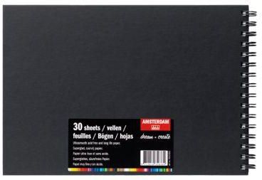 Szkicownik All Acrylics - Amsterdam - 30 A4, 250 g Czarny szkicownik na spirali z serii Amsterdam All Acrylics to niezbędnik każdego artysty. Wszystkie Twoje pomysły nabiorą w nim kształtu. Na 30 kartkach bezkwasowego, gładkiego papieru o gramaturze 250 g/m² możesz tworzyć pierwsze szkice – …