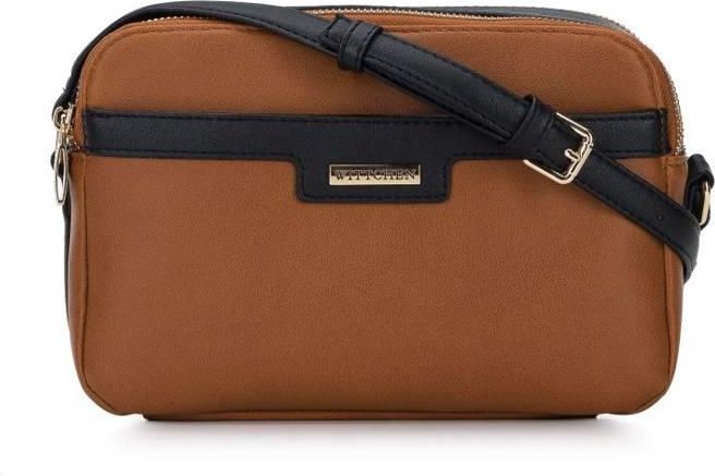 Mała damska torebka Ta klasyczna pudełkowa torebka spodoba się każdej fance minimalizmu. Wykonana została z wysokiej jakości skóry ekologicznej podkreślonej okuciami w kolorze złotym. Dzięki dwóm komorom łatwo zachowasz w niej porządek i zmieścisz to, co potrzebujesz mieć pod ręką na co dzień: portfel, telefon, krem do rąk, chusteczki i kilka drobiazgów. Ta dwukolorowa damska torebka z ekoskóry to ponadczasowy dodatek, który dopasujesz niemal do każdej stylizacji: zarówno koronkowej sukienki, jak i szerokich dżinsów i koszulki. Nasza rada: za pomocą regulowanego paska dopasuj ją do swojej sylwetki. Wewnątrz: dwie komory; ponadto dwie kieszenie, w tym jedna na suwak; jasna podszewka haftowana w logo WITTCHEN. Dodatkowo: 100% skóra ekologiczna; z przodu kieszeń zamykana na magnes; zapięcie na zamek; regulowany długi pasek. materiał: skóra ekologiczna wymiary zewnętrzne: 13 - 15 x 20 - 22,5 x 7 cm waga: 0,33 kg długość paska: 97 - 117 cm elementy metalowe: w kolorze złotym 2 lata gwarancji producenta