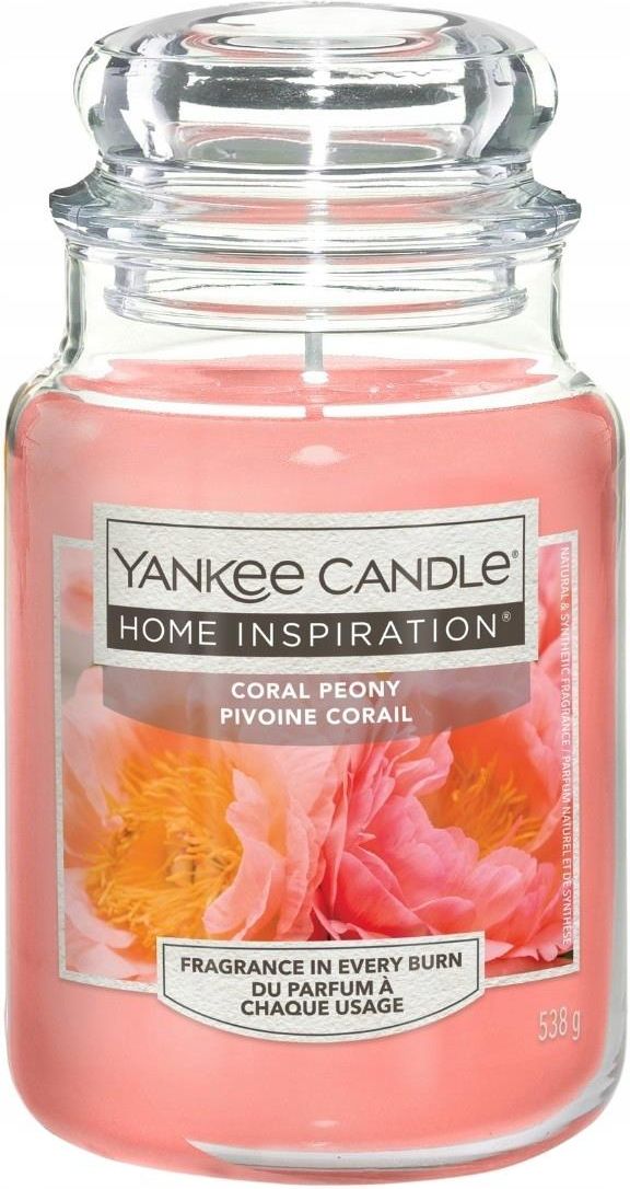Yankee Candle Świeca w Dużym Słoiku Coral Peony Świeży powiew nadmorskiego ogrodu zamknięty w klasycznym szkle - Yankee Candle Coral Peony to wyjątkowa kompozycja, która łączy soczyste nuty owocowe, morską bryzę i egzotyczne kwiaty. Zapach otwierają liść bananowca, różowe pomelo, sól himalajska i morska świeżość. W sercu rozkwitają plumeria, orchidea, konwalia i lilia wodna, a bazowe nuty piżma, trawy morskiej, drzewa sandałowego i cedru dodają głębi i elegancji. Ta złożona, a jednocześnie lekka i kojąca kompozycja doskonale sprawdzi się w salonie, sypialni lub łazience, wprowadzając atmosferę świeżości i relaksu. Duży słoik z kolekcji Home Inspiration® to do 120 godzin palenia, równomierne wypalanie i estetyczny wygląd, który pasuje do każdego wnętrza. Dlaczego warto wybrać Yankee Candle Świeca Coral Peony harmonijne połączenie kwiatów, cytrusów i nut wodnych z ciepłą bazą drzewną, wyjątkowy zapach idealny na wiosnę i lato - świeży, a zarazem otulający, do 120 godzin palenia z intensywnym, ale nienachalnym aromatem, elegancki słoik Yankee Candle, który świetnie prezentuje się w każdym wnętrzu. Sposób użycia Podczas pierwszego palenia poczekaj, aż wosk roztopi się równomiernie do brzegów słoika - zapobiega to powstawaniu tunelu. Przed kolejnym użyciem skracaj knot do 3mm, aby świeca paliła się stabilnie i czysto. Pojemność: 538g