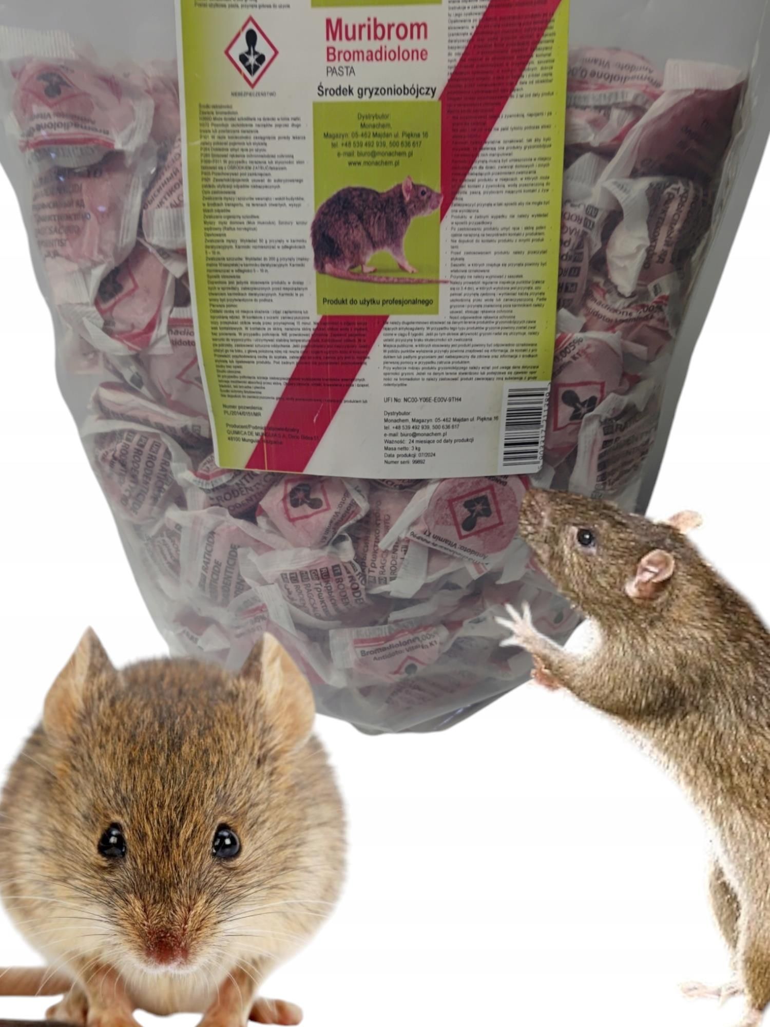 AKAJ to szybka dostawa. 「 ✦ AKAJ ✦ 」 BARDZO SILNA TRUTKA NA SZCZURY I MYSZY PASTA 3KG GRYZONIOBÓJCZA do zwalczania gryzoni. Dlaczego warto kupić BARDZO SILNĄ TRUTKĘ NA SZCZURY I MYSZY PASTĘ 3KG - Środek gryzoniobójczy -odporna na wilgoć - pasta -skutecznie wabi gryzonie - idealnie nadaję się do zwalczania gryzoni wewnątrz oraz wokół obiektów przemysłowych, w gospodarstwach rolnych - używana przez profesjonalistów SPECYFIKACJA Substancja czynna: Bromadiolone 0,005% Zwalczanie myszy wewnątrz i wokół budynków: wykładać 40g przynęty w karmniku deratyzacyjnym . Zwalczanie szczurów wewnątrz i wokół budynków: wykładać 60-100g przynęty w karmniku deratyzacyjnym. Jeżeli wymagana jest więcej niż jedna stacja deratyzacyjna, minimalna odległość pomiędzy stacjami powinna wynosić 5m. Opakowanie 3 kg. Trucizna jest zabezpieczona przed przypadkowym spożyciem przez ludzi i zwierzęta domowe dzięki gorzkiej substancji (Britex). Pastę należy wykładać w rękawicach ochronnych w miejscach występowania gryzoni, w pobliżu ich kryjówek oraz na drogach ich przebiegu z zachowaniem zasad bezpieczeństwa i higieny. DOŁĄCZ DO ZADOWOLONYCH KLIENTÓW FIRMY AKAJ!