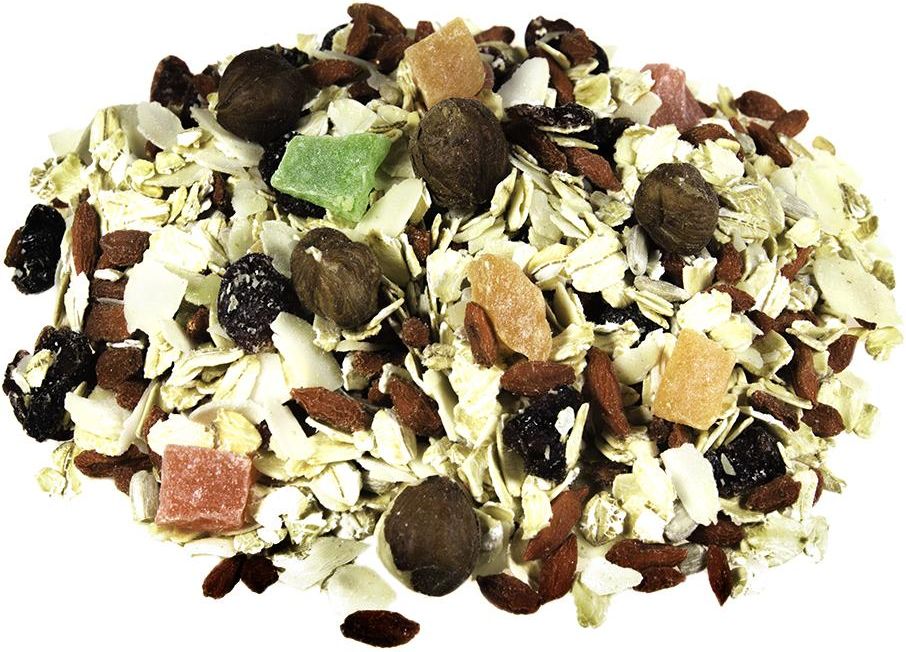 &nbsp;Musli owocowo -orzechowe&nbsp; z jagodami Goji <p>Skład (na 1kg):</p> <ul> <li>400 g płatków owsianych</li> <li>200 g owoców Goji</li> <li>100 g suszonej żurawiny</li> <li>100 g płatków migdałowych</li> <li>100 g suszonej kandyzowanej kostki ananas</li> <li>50 g słonecznika</li> <li>50 g orzechów laskowych</li> </ul> &nbsp;