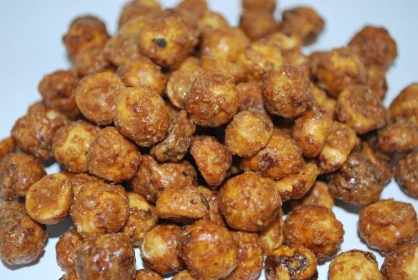 Składniki: orzechy laskowe 90%, cukier, syrop glukozowy, substancja zagęszczającam stabilizator wosk pszczeli; może zawierać śladowe ilości innych orzechów i bakalii. Przetworzono w Polsce. Orzechy laskowe w karmelu BadaPak to doskonałe połączenie chrupiących, zdrowych orzechów ze złotą, słodką polewą. Są źródłem niezbędnych nienasyconych kwasów tłuszczowych, witamin, minerałów i błonnika pokarmowego. Witamina E w nich zawarta to silny przeciwutleniacz. Są doskonałym źródłem magnezu. Odnajdziemy w nich również potas a także fosfor i wapń. Orzechy laskowe w karmelu BadaPak przypadną do gustu każdemu. Połączenie karmelowej polewy z chrupiącym orzeszkiem sprawdzi się w roli przekąski o każdej porze dnia. Posiekane orzeszki są również wyśmienitym dodatkiem do deserów, musli i jogurtów. Orzech laskowy to owoc leszczyny, kilkumetrowego krzewu występującego w całej Europie oraz części Azji. Są symbolem mądrości i intelektu. Biorąc pod uwagę ich prozdrowotne właściwości można tylko potwierdzić słuszność tej symboliki. Informacja o alergenach: W zakładzie są pakowane również sezam, gorczyca, soja, migdały, orzechy, produkty zawierające gluten oraz produkty zawierające SO2 (dwutlenek siarki). Zdjęcia produktu są zdjęciami poglądowymi i mogą się różnić od aktualnej partii. Firma stara się aktualizować na bieżąco wszystkie informacje zawarte na naszym sklepie www.badapak.pl, jednak dane zawarte w opisie produktu mogą różnić się nieco, w zależności od aktualnej partii produktu. Podane wartości zostały nam dostarczone od dostawców, jak również mogą być danymi literaturowymi. Kraj pochodzenia: Gruzja/Turcja Flaga: Polski produkt Porcja: 100 g Wartość energetyczna: 2363 kJ/564 kcal Tłuszcz: 30 g w tym kwasy tłuszczowe nasycone: 5,3 g Węglowodany: 55 g w tym cukry: 25 g Błonnik: 7,8 g Białko: 15 g Sól: 0,175 g
