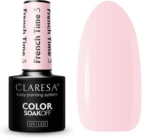 Claresa - Lakier Hybrydowy French Time 3 - 5g Odcień French Time 3 to perfekcyjny jasny, neutralny róż. Przy jego pomocy stworzysz minimalistyczny manicure, który sprawdzi się w dowolnej sytuacji ‒ w pracy, podczas wyjazdu, jako uniwersalny dodatek do każdego stroju, a także jako część Twojej …