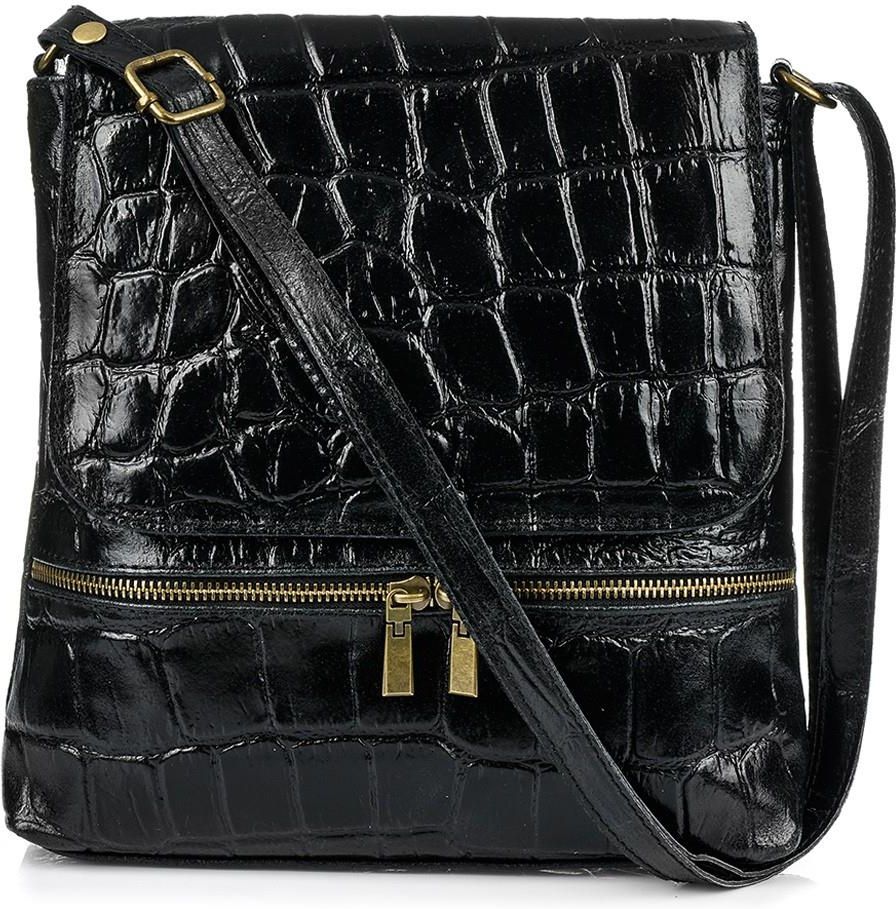 Czarna Damska Skórzana Włoska Listonoszka Pionowa klapa B69 Podkowa Leśna