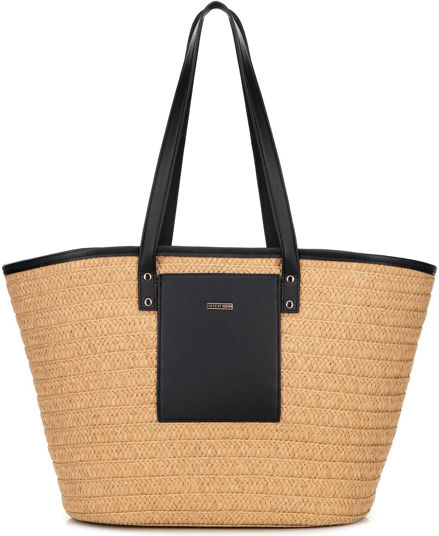 Pleciona torebka w wakacyjnym stylu Ta damska torebka typu koszyk to letni must-have, który łączy naturalny urok z funkcjonalnością. Korpus wykonany ze słomy papierowej nadaje jej lekkość i swobodny charakter, idealny na ciepłe dni. Pleciona struktura i usztywniane dno zapewniają trwałość i formę, …