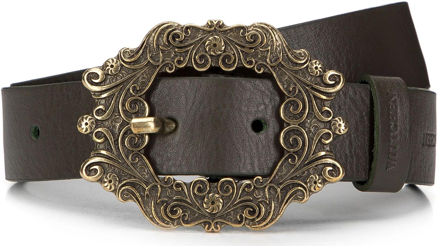 Opinie Damski pasek skórzany z fantazyjną klamrą oliwkowy Podkowa Leśna