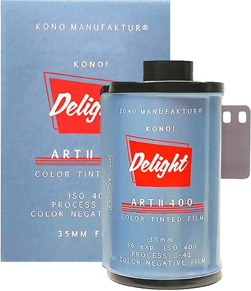 KONO! Delight ART II 400 to artystyczny film negatywowy ISO 400 procesowany metodą C-41, stworzony z myślą o fotografach pragnących podkreślić klimat retro i głębię kolorów. Film daje żywe, nasycone barwy przy dobrym świetle, jednocześnie zachowując piękne pastelowe tony i miękkość cieni w warunkach niższego natężenia światła. Dostępny w kasetach 35 mm po 36 klatek, Delight ART II 400 oferuje wyjątkowy charakter – idealny do fotografii miejskiej, portretów i scen o atmosferze nostalgii. Produkowany ręcznie w Niemczech przez KONO Manufaktur, z dbałością o detale i estetykę vintage. Specyfikacja: Format filmu: 35 mm Liczba klatek: 36 na rolkę Czułość nominalna: ISO 400 / 27° Proces: kolor negatywowy C-41