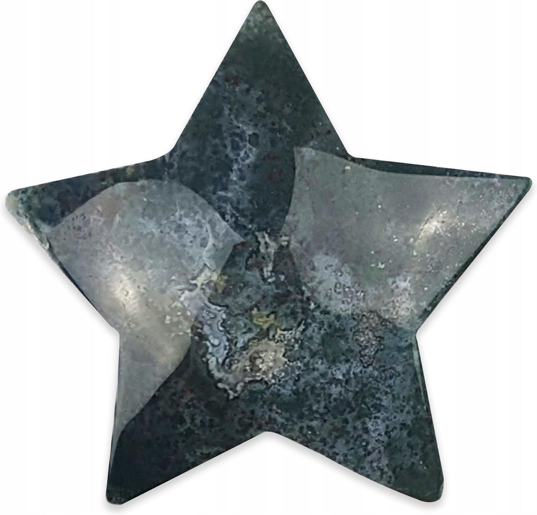 Gwiazda z Agatu mszystego ✴️ Symbol natchnienia i marzeń Podaruj sobie gwiazdkę z nieba! Ta z agatu świetnie spełni swoją rolę i zostanie z Tobą na zawsze jako amulet szczęścia. Zachwyć się urokiem gwiazdy, pięknie wypolerowanej ze 100% naturalnego kamienia. Informacje Wymiary: około 5-6 cm Waga: około 70 g Kamień: Agat mszysty Kształt: Gwiazda Gwiazdkę wybieramy intuicyjnie. Każda gwiazdka jest wyjątkowa! Każdy okaz jest wyjątkowy, ze względu na odmienną kolorystykę oraz kształt kamienia. Agat mszysty charakteryzuje się zróżnicowanym wybarwieniem, to wielobarwna odmiana chalcedonu. Gwiazdy różnią się od siebie kolorem i wzorem, dlatego masz pewność, że Twój okaz jest unikatowy. Cena dotyczy 1 gwiazdy agatu mszystego. Urok Agatu mszystego Agat mszysty to odmiana agatu i chalcedonu. Wtrącenia zielonej hornblendy lub chlorytu malują w minerale magiczne dzieła sztuki. Przypominają one leśny mech, o wszystkich odcieniach zieleni – od jasnych, przez intensywne i morskie, po bardzo ciemne. Agat mszysty jest niezwykłym minerałem, które od wieków zachwyca i oczarowuje ludzi na całym świecie. Gwiazda symbolika Gwiazda to bardzo znaczący symbol w kulturze i sztuce. Jej znaczenie oraz przypisywane wartości są niezwykle szerokie. Po pierwsze, gwiazda symbolizuje nieskończoność i boskość – boską ideę, anioła, niebiańską moc. Po drugie, gwiazdę kojarzymy z wolnością i ideałami. Wierzymy, że gwiazdy przynoszą natchnienie, marzenia. Sprzyjają szczęściu i sukcesom. Dają nadzieję na lepsze jutro. Co więcej, to właśnie z gwiazd próbujemy odczytać przyszłość i przeznaczenie. Agat mszysty symbolika Równoważy emocje, wycisza i uspokaja. Jego właściwości można porównać do emocji, które odczuwamy podczas leśnego spaceru. Agat mszysty sprzyja głębokim refleksjom, zrozumieniu oraz pomaga poukładać zagmatwane myśli. Agat mszysty jest kamieniem nowego początku. Odświeża duszę i pozwala dostrzec piękno we wszystkim, na co patrzysz. Rozwija siłę i umiejętność dogadywania się z innymi, a co więcej – zachęca do zaufania i nadziei. Uspokajająca atmosfera agatu mchowego pomaga nam również zbliżyć się do natury i może zapewnić poczucie skupienia i cierpliwości, gdy musimy odłączyć się od chaosu współczesnego społeczeństwa.