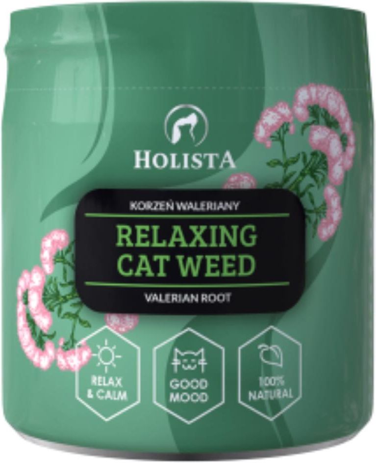 Waleriana dla kotów to preparat stworzony ze specjalnie wyselekcjonowanych korzeni kozłka lekarskiego, które dzięki odpowiedniej metodzie cięcia oraz suszenia zachowują swój niezwykły aromat. Holista Waleriana Dla Kotów 50g Waleriana dla kotów to preparat stworzony ze specjalnie wyselekcjonowanych korzeni kozłka lekarskiego, które dzięki odpowiedniej metodzie cięcia oraz suszenia zachowują swój niezwykły aromat. Kozłek lekarski zwany także walerianą to zioło, które efektywnie wprowadza koty w dobry nastrój oraz zachęca do zabawy. Jest bezpieczne w przypadku spożycia, nie działa uzależniająco, a w niektórych przypadkach może pobudzać także apetyt. Jak działa Holista Relaxing Cat Weed?Kot po powąchaniu bądź spożyciu waleriany popada w stan ekscytacji: bawi się, tarza i szaleje. Po upływie ok. 10-20 minut efekt mija i może odczuwać chęć na drzemkę, to zupełnie normalne zachowanie ponieważ jest zrelaksowany. Jeśli Twój kot dobrze reaguje na Relaxing Cat Weed to możesz wykorzystać preparat do obniżenia poziomu stresu podczas podróży lub po sytuacji w której odczuł dyskomfort psychiczny jak np. wizyta w lecznicy weterynaryjnej. W tym celu umieść szczyptę Relaxing Cat Weed w transporterze swojego pupila. Jeśli po pierwszym podaniu Relaxing Cat Weed kot zareaguje nadmierną ekscytacją bądź agresją, nie należy więcej stosować preparatu. Takie zachowanie będzie oznaczać, że kozłek lekarski nie wywołuje zamierzonego efektu i należy w jego przypadku sięgnąć po inną roślinną kocią „używkę”. Nowe badania sugerują, że zarówno osobowość kota, jak i zmienność genetyczna genów kodujących receptory węchowe u danego osobnika mogą odgrywać rolę w tym, jak koty reagują na walerianę. Co ciekawe jeśli kot nie reaguje na kocimiętkę, to jest większa szansa, że spodoba mu się waleriana. Istnieje większe prawdopodobieństwo, że kocięta mogą nie zareagować na walerianę, produkt znajduje bowiem większe uznanie u kotów dorosłych. Skład: 100% korzeń kozłka lekarskiegoSposób podania: rozsypać szczyptę w dowolnie wybranym miejscu i pozwolić kotu się bawić. Można stosować do wypełnienia kocich zabawek. Preparat może być spożywany. Nie uzależnia, nie wykazuje szkodliwego działania na organizm