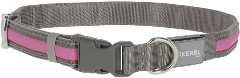 Obroża podświetlana dla psa Light & Reflex, 35 - 50 cm x 25 mm, różowa, Kerbl dwa tryby migania: szybko/wolno lub świeci światłem ciągłym z czarnej tkaniny nylonowej z jaskrawym paskiem odblaskowym wodoodporna dzięki energooszczędnej technologii Led czas pracy w trybie migania do 5 godzin i do …