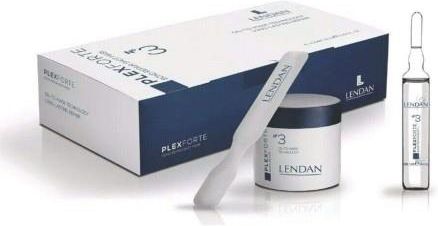 Lendan Plex Forte Bond Repair Shot Mask N3 ampułeki odbudowujące 6szt. LENDAN Plex Forte jest to innowacyjna kuracja do włosów bazująca na systemie protein roślinnych oraz aminokwasów MVP Complex chroniąca włosy podczas zabiegów technicznych szczególnie dedykowana do zaawansowanych koloryzacji oraz mocnego rozjaśniania włosów. Plex Forte od Lendan zawiera wyjątkową kompozycję białek pochodzenia roślinnego o różnej masie cząsteczkowej MVP Complex, które intensywnie regenerują włosy od wewnątrz zwiększając wytrzymałość włókna włosa i domykając łuski włosa zapewniając mocne oraz lśniące włosy. Intensywnie działająca kuracja naprawcza w fiolce do profesjonalnego zastosowania dla osiągnięcia długotrwałych rezultatów. Działanie zauważalne już po pierwszym użyciu z aktywnym składnikiem PlexForte szybki i długotrwały efekt zregenerowanych włosów. 1. Zminejsza uszkodzenia włosów. 2. Przeciwdziała splątywaniu się końcówek włosów. 3. Przywraca elastyczność włosom 4. Skraca czas suszenia 5. Utrzymuje włosy w doskonałej kondycji 6. Przeciwdziała puszeniu się włosów. Sposób użycia: W dołączonym do zestawu pojemniku wymieszaj jedną fiolkę Shot Mask N3 z 30ml odżywki N5 do oznaczonego z boku „wskaźnik pełnego poziomu” w pojemniku musi pozostać wolna przestrzeń, tak aby, po zakręceniu poprzez potrząsanie móc wymieszać zawartość. Możesz również całość wymieszać dołączoną szpatułką, tak aby, uzyskać jednolitą konsystencję. Nakładaj na czyste, mokre włosy delikatnie wmasowując tak aby uzyskać maksymalne wchłanianie. Pozostaw na włosach 5 minut następnie spłucz. Ze względu na wysokie stężenie składników aktywnych zaleca się stosowanie maksymalnie do 4 aplikacji w miesiącu.Uwaga : Do wykonania zabiegu należy dokupić odżywkę nr5.