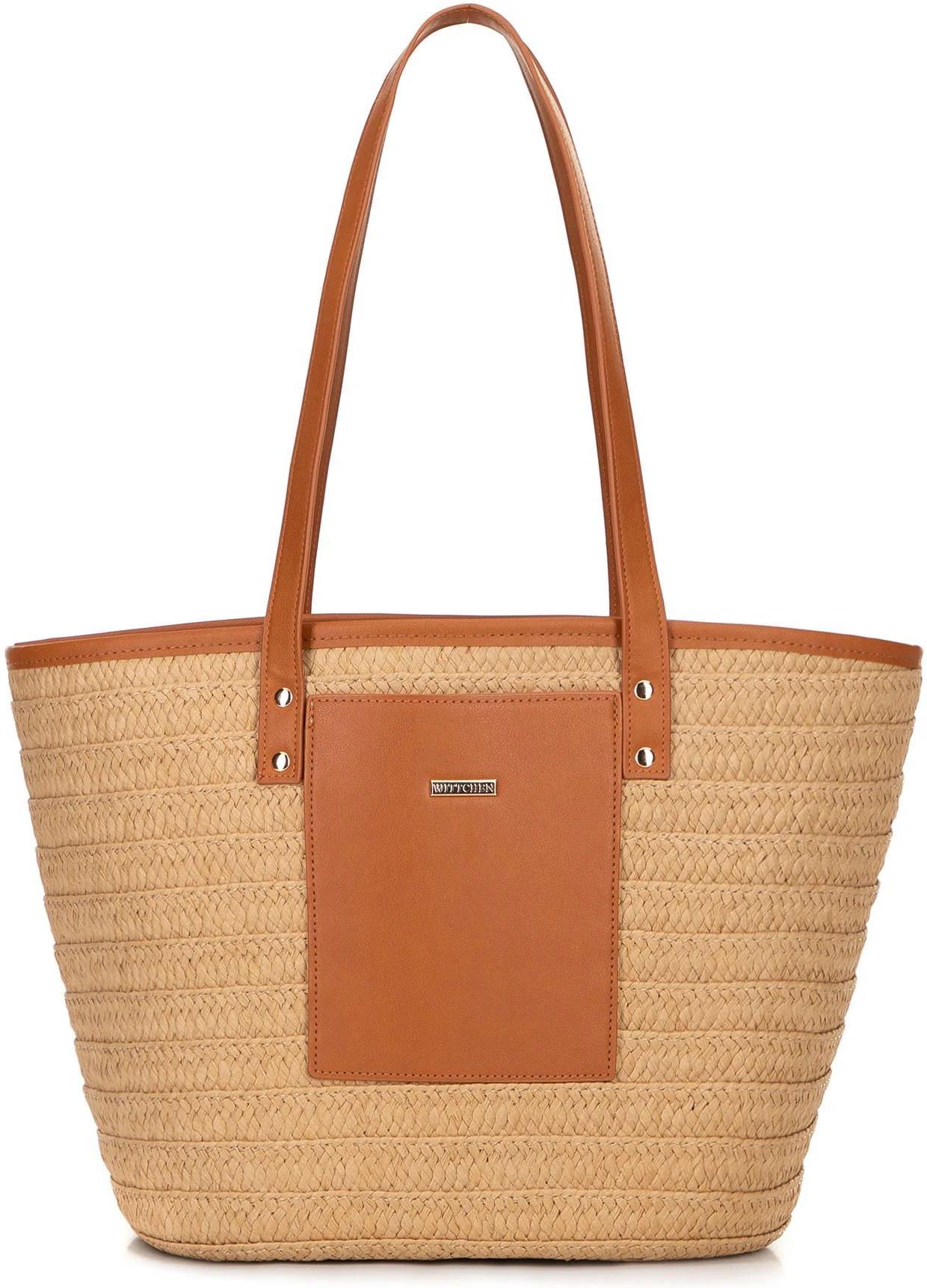 Letni koszyk z papierowej słomy – lekka i stylowa torebka na ciepłe dni Ta damska torebka typu koszyk to kwintesencja letniego stylu i swobody. Korpus wykonany ze słomy papierowej, zachwyca swoją plecioną strukturą i naturalnym wyglądem. Na przodzie znajduje się subtelne logo producenta umieszczone na naszywce oraz mała kieszonka na drobiazgi. Wnętrze torebki zostało wykończone podszewką z poliestru, którą można ściągnąć za pomocą troczków, chroniąc zawartość przed rozsypaniem. Dla kogo? Jeśli szukasz letniej torebki, która będzie jednocześnie stylowa, pojemna i wygodna – ten model spełni wszystkie oczekiwania. Idealna na plażę, zakupy czy spacer po mieście. Nasza rada: Zestaw ją z jasnymi jeansami typu mom fit, topem na cienkich ramiączkach i espadrylami na platformie lub skórzanymi klapkami. Całość uzupełnij słomkowym kapeluszem i dużymi okularami przeciwsłonecznymi. Kluczowe cechy: Materiał: Słoma papierowa w korpusie torebki to lekki i przewiewny materiał, który doskonale wpisuje się w letni klimat. Wstawka z ekoskóry z logo producenta: Eleganckie wykończenie, które podkreśla estetykę modelu. Dwie rączki z ekoskóry: Wygodne uchwyty wykonane z trwałego materiału, który dobrze leży w dłoni i na ramieniu. Praktyczne wnętrze: Jedna otwarta kieszeń wewnątrz jest idealna na drobne przedmioty. Skład: 100% słoma papierowa; podszewka: 100% poliester; rączki i wstawka: ekoskóra. Wygodne i funkcjonalne rozwiązania: Podszewka ściągana na troczki: Praktyczne rozwiązanie, które pozwala zamknąć torebkę bez klasycznego zapięcia. Dodatkowa kieszeń na przodzie: To praktyczne miejsce na rzeczy, do których potrzebujesz szybkiego dostępu. Usztywniane dno: Stabilna podstawa, która zapobiega odkształceniom i pozwala torebce zachować formę nawet po odstawieniu. Podkreśl letni charakter swoich stylizacji i postaw na koszyk, który łączy wygodę z ponadczasowym stylem!
