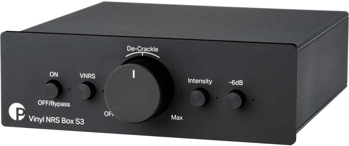 Reduktor zakłóceń z płyt winylowych Pro-Ject Vinyl NRS Box S3 Pro-Ject przedstawia Vinyl NRS Box S3. Jest to pierwszy, przystępny cenowo komponent, który elektronicznie poprawia fizyczne zużycie Twoich płyt winylowych. Wreszcie możesz czerpać więcej radości ze swoich mocno używanych płyt. Główne Cechy: Funkcja usuwania trzasków (De-Crackling) Redukcja szumów dla płyt winylowych Redukuje hałas napędu gramofonu Przetwarzanie oparte na DSP z 24 bitami Częstotliwość próbkowania 96 kHz dla precyzyjnego przetwarzania Bypass galwaniczny, przy wyłączonym urządzeniu Idealna charakterystyka transferu i liniowość Usuwanie trzasków z regulowaną czułością Działanie na poziomie liniowym Kompaktowa konstrukcja, w standardowej obudowie z linii S3 Pełna aluminiowa obudowa Produkowany w kolorze srebrnym lub czarnym Problem ze starymi winylami Każdy ma swoją ulubioną starą płytę winylową, która z czasem uległa uszkodzeniu, jest naprawdę porysowana i prawdopodobnie nie można już kupić nowej. Wiele utworów nie jest również przesyłanych na platformy streamingowe, więc jedynym sposobem ich słuchania są stare płyty winylowe. Z pewnością lekkie szumy i trzaski są częścią doświadczenia z winylem, ale w pewnym momencie, przy nadmiernych poziomach, nie jest to już zabawne i twoja ulubiona płyta może po prostu pozostać na twojej półce przez resztę swojego długiego życia. Znamy te problemy i chcemy przywrócić te płyty z powrotem na gramofon. Rozwiązanie jest teraz tutaj i nazywa się Vinyl NRS Box S3. Jak to działa? Podłącz wyjście przedwzmacniacza gramofonowego do Vinyl NRS Box S3. Po pierwsze, sygnał liniowy zostaje zdigitalizowany z 24-bitową głębią bitową i częstotliwością próbkowania 96 kHz. Jeśli wejście jest zbyt głośne, pokaże to odpowiednia dioda LED. Następnie możesz aktywować przełącznik -6 dB i wzmocnienie jest teraz w porządku. Prawdziwa magia dzieje się w domenie cyfrowej. De-Crackling Sygnał jest filtrowany, aby nie zakłócał samego przetwarzania. Jako znacznik trzasków używane są komponenty wysokiej częstotliwości. Dedykowany algorytm może teraz wykryć te piki. Czułość można łatwo regulować potencjometrem z przodu. Dioda LED zapewnia natychmiastową informację zwrotną na temat procesu. Trzeszczące części można zredukować nawet o 8 dB, co stanowi dużą poprawę wrażenia słuchowego. Jeśli nie chcesz korzystać z funkcji De-Crackling wystarczy przekręcić potencjometr całkowicie w lewo i algorytm jest w trybie obejścia. Vinyl Noise Reduction System (VNRS) Sygnał jest najpierw rozdzielany na dwa pasma częstotliwości, a następnie podawany do dwóch ekspanderów, które zwiększają stosunek sygnału do szumu. W tej technice nie słychać żadnych modulacji szumu! Jesteśmy w stanie zredukować hałas nawet o 8 dB. Połączenie i konfiguracja Vinyl NRS Box S3 powinien być podłączony między przedwzmacniaczem gramofonowym a przedwzmacniaczem lub wzmacniaczem zintegrowanym. Jeśli go włączysz, Vinyl NRS Box S3 będzie natychmiast aktywny. Jeśli nie chcesz go w swoim torze, po prostu go wyłącz. Wejścia są galwanicznie połączone z wyjściami. Dostępne są dwa algorytmy intensywności De-Crackling'u: podstawowy przetwarza sygnał bardzo lekko; zaawansowany jest silniejszy, przy cięższym przetwarzaniu. Zawsze wypróbuj najpierw ustawienie podstawowe i dostosuj intensywność za pomocą potencjometru. Naciskając przycisk „Intensity”, możesz włączyć tryb zaawansowany, jeśli chcesz i/lub jest to konieczne. Dioda LED pokazuje, czy kliknięcia i trzaski są zmniejszone. Jeśli jesteś zadowolony z ustawienia usuwania trzasków, ale nadal słychać dużo hałasu, możesz teraz aktywować funkcję redukcji szumów winylu, naciskając przycisk "VNRS". Jest tylko jedno ustawienie dla funkcji Vinyl Noise Reduction i nie można go dostosować w ten sam sposób, w jaki można regulować usuwanie trzasków. Specyfikacja Techniczna: Wewnętrzny sampling: 96 kHz/24 bity Przetwarzanie wewnętrzne: 56-bitowy akumulator, podwójna precyzja Pasmo przenoszenia 20 Hz do 20 kHz: -0.6dB / +0.1dB Pasmo przenoszenia 30 Hz do 20 kHz: -0.2dB / +0.1dB Wskazanie Clip: -0.6 dB poniżej rzeczywistego przesterowania Tryb obejścia (Bypass): połączone galwanicznie (Rlink THD: Redukcja hałasu/VNRS: do 8dB (20Hz do 20kHz) Redukcja De-Click (podstawowa): 8dB (3kHz do 20kHz) Redukcja De-Click (intensywna): 12dB (2kHz do 20kHz) Zasilanie zew: 18 V/500 mA DC Pobór mocy w trybie czuwania: 0 W WYŁ/Czuwanie, 2.2 W WŁ (bez zewnętrznego zasilacza) Wymiary: szer. x wys. x gł. (z gniazdami): 103 x 37 x 104 (119) mm Waga: 340 g bez zasilacza
