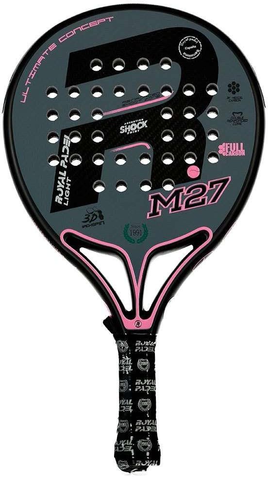 Royal Padel produkuje rakiety do padla od 1991 roku i dlatego jest jedną z marek o największym doświadczeniu w produkcji rakiet do padla. Royal Padel ma siedzibę w Hiszpanii i zawsze dąży do ulepszania swoich rakiet, aby zapewnić swoim klientom jak najlepsze wyniki na korcie. Rakieta M27 Light została specjalnie opracowana z myslą o kobietach. Nie tylko kolor, ale przede wszystkim parametry techniczne pozwolą również paniom w pełni cieszyć się gra w padla. Przede wszystki rakieta jest lekka i łatwo manerwowalna, a ponadto nadaje piłeczce optymalną moc przy niskim wkładzie własnym . Rakieta z centrycznym balansem, pozwala na wszechstronną grę. Wykonana z włókna szklanego zarówno w ramie (wzmocnionej włóknem węglowym), jak i na powierzchni, co sprawia, że rakietka jest bardzo czuła i amortyzująca w chwili kontaktu z piłką. Powierzchnia jest bardzo szorstka, daje wrażenie dłuższego czasu kontaktu i pozwala nadać piłce rotację. Model ten jest produkowany z rdzeniem polietylenowym, który jest odpowiednio usztywniony i generuje dużą moc. Wzmocnienie 3D Hexcell po obu stronach główki zwiększają jej trwałość, dzięki czemu rakieta posłuży znacznie dłużej.