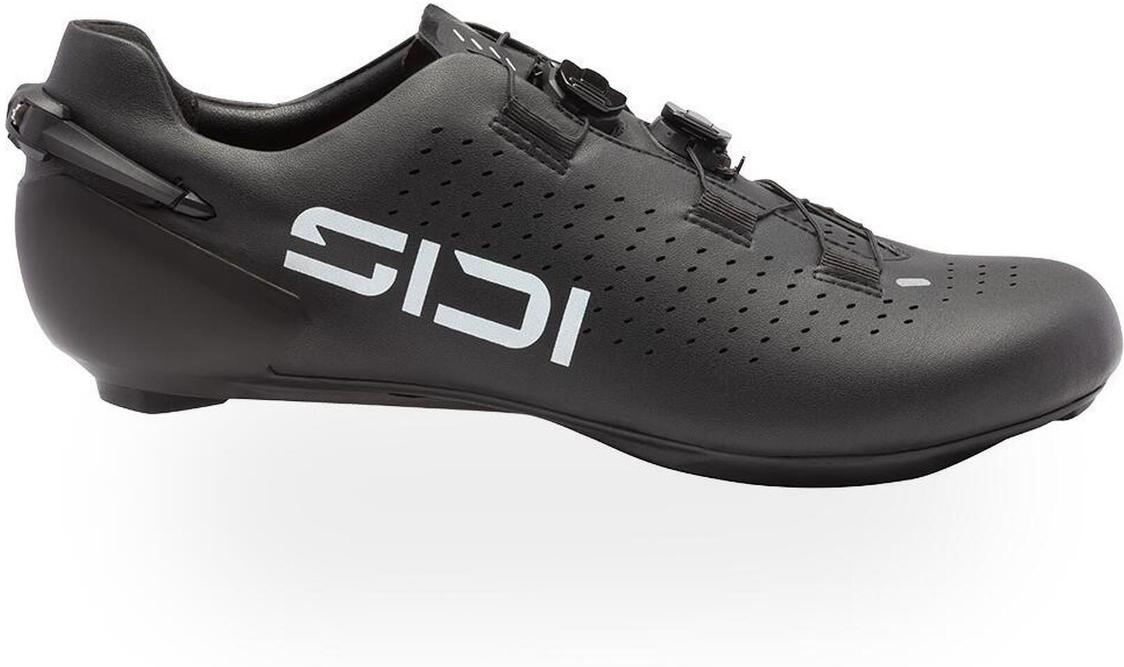 SIDI Shot 3 SIDI Shot 3 został zaprojektowany tak, aby niemal zniknąć na stopie, oferując czystą wydajność i maksymalny transfer mocy. Monokokowa cholewka z mikrofibry wzbogacona wewnętrzną siatką gwarantuje jednocześnie wentylację i stabilne podparcie, nie obciążając konstrukcji. System dopasowania oparto na dwóch aerodynamicznych pokrętłach NUUN 001C, które umożliwiają precyzyjną regulację w każdych warunkach. Anatomiczny język UNUM Ergo redukuje nacisk na podbicie, a regulowany beznarzędziowo zapiętek pozwala dopasować retencję pięty do indywidualnych preferencji. Wkładka Memory Fit z silikonowym wykończeniem zapewnia adaptacyjny komfort i stabilność stopy. Pod spodem pracuje karbonowy DUO-FIT chassis, uzupełniony podeszwą R1FC z łącznikiem Nexus Bridge, gwarantującą sztywność na poziomie 12 oraz maksymalną efektywność podczas sprintów i jazdy na wysokiej intensywności. Konstrukcja umożliwia niezależną regulację bloków, a wymienne elementy — takie jak panele pięty i pokrętła — zapewniają długowieczność modelu. Specyfikacja techniczna Cholewka Monokokowa mikrofibra z wewnętrzną siatką System zapięcia Podwójne pokrętła NUUN 001C (aluminium) Język UNUM Ergo – anatomiczny język odciążający podbicie Zapiętek Regulowany beznarzędziowo, zdejmowany Wkładka Memory Fit z silikonowym wykończeniem Chassis DUO-FIT carbon – maksymalna sztywność i kontrola Podeszwa R1FC carbon z Nexus Bridge – indeks sztywności 12 System bloków Niezależna regulacja pozycji Części wymienne Pady pięty i pokrętła Dopasowanie (fit) 10 Sztywność podeszwy 12 (z podeszwy R1FC) Korzyści dla użytkownika Maksymalny transfer mocy dzięki karbonowemu podwoziu DUO-FIT. Bezwzględna sztywność i niska masa dzięki podeszwie R1FC. Precyzyjne dopasowanie za sprawą dwóch aerodynamicznych pokręteł NUUN 001C. Redukcja nacisku na podbicie dzięki anatomicznemu językowi UNUM Ergo. Indywidualne dopasowanie pięty dzięki regulowanemu beznarzędziowo zapiętkowi. Stabilność stopy i efektywne przeniesienie mocy dzięki wkładce Memory Fit. Możliwość personalizacji pozycji bloków dzięki niezależnej regulacji. Dłuższa żywotność dzięki wymiennym padom pięty i pokrętłom.
