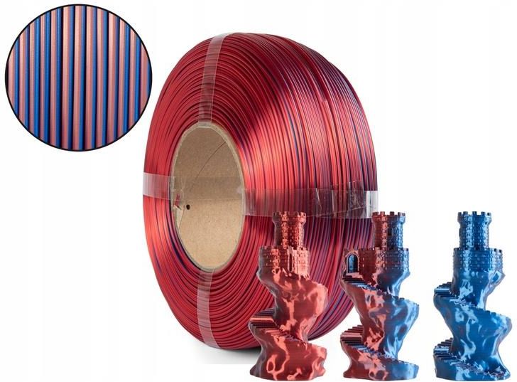 Filament Spectrum ReFill PLA Magic SILK 1.75mm FIRE & ICE 1kg Spectrum Magic SILK PLA Magia kolorów - Twoje wydruki w nowym wymiarze Spectrum Magic SILK PLA to innowacyjny filament do druku 3D, który przekształca Twoje projekty w prawdziwe dzieła sztuki, dzięki niesamowitemu efektowi zmiany kolorów. Wykorzystując nowoczesną technologię koekstruzji, Magic SILK PLA łączy dwa kolory w jednej nici, tworząc zachwycające przejścia barw i dynamiczne efekty świetlne. Każdy wydruk wykonany z tego filamentu mieni się kolorami w zależności od kąta patrzenia i oświetlenia, nadając Twoim modelom głębię i wyjątkowy charakter. Magic SILK PLA oferuje gładką, połyskującą powierzchnię, która nie tylko przyciąga wzrok, ale także dodaje elegancji każdemu projektowi. Jego wyjątkowe właściwości sprawiają, że jest łatwy w obsłudze i kompatybilny z większością drukarek 3D wykorzystujących technologię FDM/FFF, co czyni go idealnym wyborem zarówno dla początkujących, jak i zaawansowanych użytkowników. Filament charakteryzuje się doskonałą precyzją wydruków. Wydruki wykonane z Magic SILK PLA najlepiej prezentują się w modelach o bogatej szczegółowości, gdzie efekt zmiany kolorów jest najbardziej imponujący. Dzięki Magic SILK PLA Twoje projekty zyskają nowy, niespotykany wymiar, wprowadzając element magii i innowacji do każdego dzieła. Ten dwukolorowy filament to niezastąpiony wybór dla designerów, artystów oraz entuzjastów druku 3D, którzy pragną wzbogacić swoje prace o wyjątkowy, magiczny efekt. Zastosowanie Sztuka dekoracyjna Projektowanie wnętrz Projekty edukacyjne Prototypowanie Kluczowe cechy Technologia koekstruzji: dwa kolory w jednej nici Dynamiczne przejścia barw w zależności od kąta patrzenia Efekt zmiany kolorów Gładka, jedwabista powierzchnia wydruków Wysoka estetyka i wyjątkowy charakter modeli Kompatybilność z większością drukarek 3D FDM/FFF Łatwość druku Dane techniczne Temperatura drukowania: 210-240°C Podgrzewany stół: wymagany Temperatura stołu: 40-60°C Prędkość druku: 40-150mm/s Ogrzewana komora robocza: niewymagana