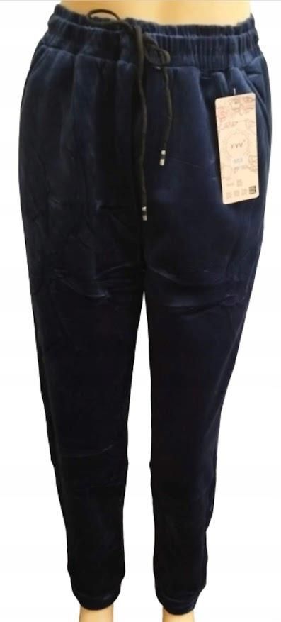 SPODNIE Z KIESZENIAMI WELUR OCIEPLANE FUTERKIEM GRANATOWE 5/6XL (50/52) Podkowa Leśna