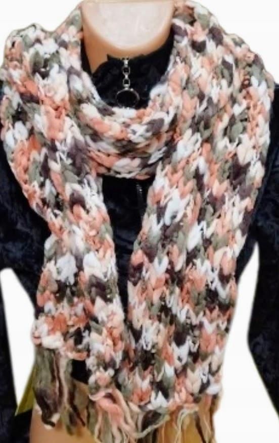 SZALIK DAMSKI PLECIONY DŁUGI Z FRĘDZLAMI 250cm wielokolorowy ciepły Podkowa Leśna