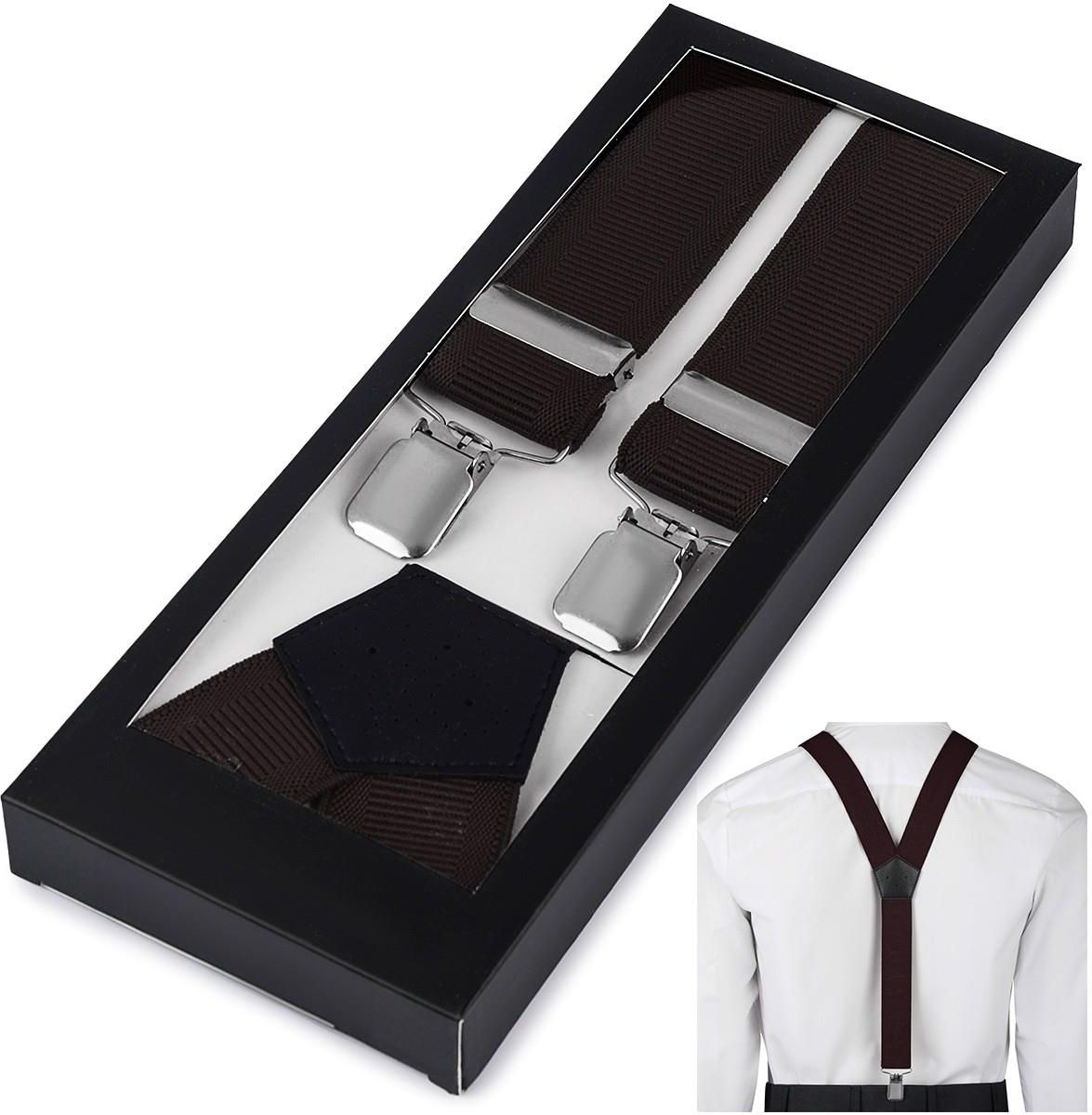 Szelki do spodni męskie eleganckie mocne V brązowe z pudełkiem SZ6 Podkowa Leśna