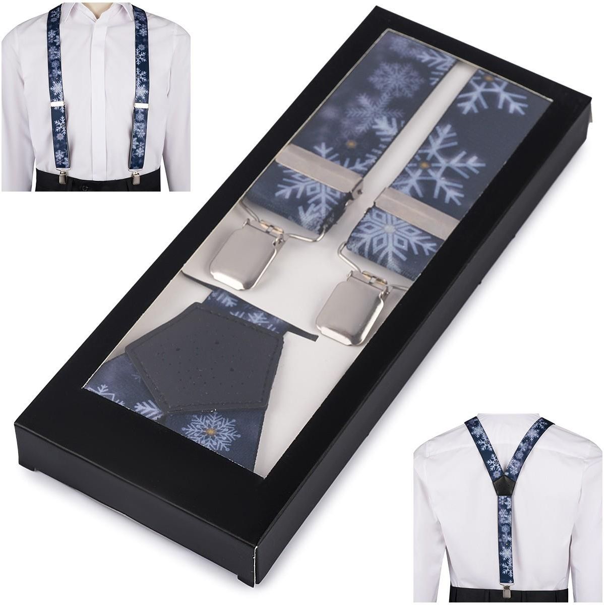 Szelki do spodni męskie eleganckie mocne V w śnieżki z pudełkiem SZ6 Podkowa Leśna