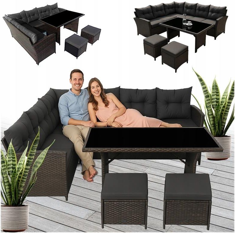 Velaco Meble Ogrodowe Rattanowe Zestaw Toledo Brązowy 8 Osobowy Narożnik Stół Pufy Toledobr 4-Cz. Podkowa Leśna