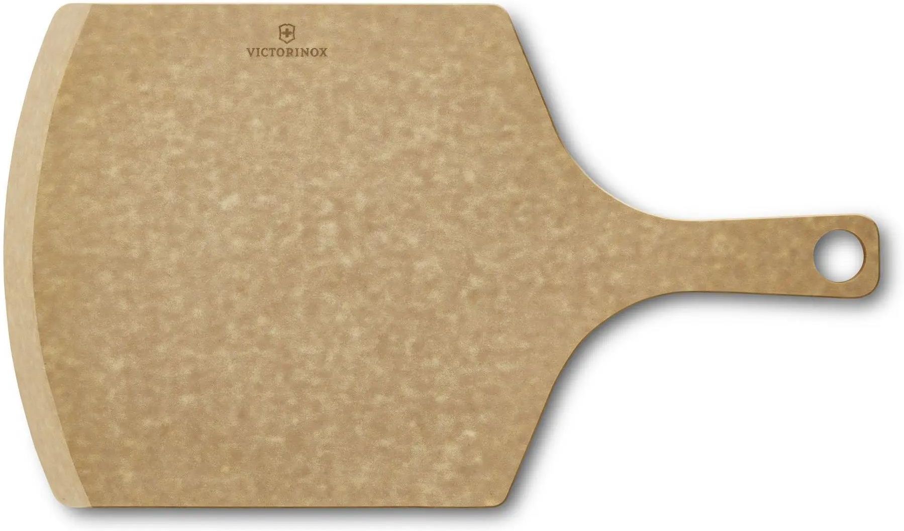 Łopatka do pizzy o wymiarach 43x36cm została zaprojektowana przez Victorinox i charakteryzuje się doskonałym wzornictwem i jakością wykonania. Łopatka to podstawowy element, który powinien znaleźć się w kuchni każdego miłośnika pizzy. Łopatka do pizzy posiada również otwór, który umożliwia zawieszenie deski na haczyku lub organizatorze w kuchni. Produkt został wykonany z kompozytu papierowego, dzięki czemu marka Victorinox angażuje się na rzecz ochrony środowiska. Tworzywo to jest również przyjazne ostrzom noży, nie tępiąc ich. Niewątpliwym atutem łopatki jest odporność na temperaturę do 175°C, dzięki czemu może być wykorzystana jako podstawka pod gorące naczynia. Deski i łopatki do pizzy marki Victorinox można myć w zmywarce.