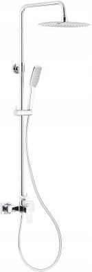 KFA MOKAIT CHROM DESZCZOWNIA Z BATERIĄ NATRYSKOWĄ 5536-910-00 Deszczownie z kolekcji Mokait to doskonałe połączenie funkcjonalności i klasyki w nowoczesnym wydaniu. Każdy element tej kolekcji został starannie zaprojektowany, by wprowadzić do łazienki nie tylko praktyczne, ale również estetyczne rozwiązania. Deszczownia Mokait wyróżnia się unikalnym designem, gdzie dominujące kąty harmonijnie współgrają z łukami, inspirowanymi klasyczną architekturą akweduktów. Nowoczesnego sznytu dodaje matowa czerń, która pokrywa produkt, nadając mu elegancki i gustowny wygląd. Dzięki temu deszczownia Mokait doskonale wpasuje się zarówno w tradycyjnie urządzone łazienki, jak i te o bardziej nowoczesnym charakterze. W skład zestawu prysznicowego wchodzi wytrzymały i odporny na uszkodzenia wąż PVC, wyposażony w wygodną nakrętkę montażową oraz rączka natrysku z zabezpieczeniem przed porysowaniem mocowania węża. Regulowany rozstaw mocowań ściennych umożliwia dopasowanie deszczowni do indywidualnych potrzeb użytkownika, co znacznie ułatwia instalację. Deszczownia Mokait jest także wyposażona w innowacyjny system czyszczenia easy clean, który zapobiega osadzaniu się kamienia, dzięki czemu utrzymanie produktu w czystości jest niezwykle proste. Dodatkowo, aby zapobiec powstawaniu brudnych śladów na matowej czarnej powłoce podczas montażu, do zestawu dołączone są białe rękawiczki. Indeks: 5536-910-00 Kolor: chrom EAN: 5907571552660 PKWiU: 28.14.12-33.04.01 Montaż: 2-otworowy Typ: ścienna Materiał: mosiądz Element sterujący: regulator ceramiczny Ø35 Przepływ wody [l/min]: rączka natrysku 8,6 / dysk 8,3 Ciśnienie robocze [atm]: 3 Temperatura wody [°C] maks.: ≤90/65 Grupa akustyczna: II Rozstaw przyłączy [mm]: 150 ± 15 Ilość strumieni rączki natrysku: 1 Długość węża [mm]: 1500 Materiał węża: PVC Średnica talerza [mm]: 260x190 Przełącznik: ceramiczny opakowanie zawiera: bateria kompletna, drążek natrysku górny/dolny, dysk przegubowy, rączka natrysku z uchwytem, zestaw montażowy (mimośrody z uszczelkami + rozety ‒ 2 szt., mocowanie ścienne drążka z wkrętem mocującym ‒ 1 szt.), wąż natrysku PVC (L=1500 mm)