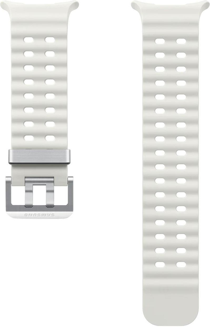 Pasek Marine Band do Galaxy Watch Podkręć swoją wydajność Pasek Marine Band został stworzony, aby spełniać standardy wydajności nowego Galaxy Watch Ultra. Możesz bez obaw podbijać sporty wodne dzięki lekkiej i trwałej klamrze oraz szerokiemu marszczeniu ułatwiającemu odprowadzanie wody i szybkiemu suszeniu potu. Komfort i trwałość Stworzony, aby płynnie łączyć się z korpusem smartwatcha, zapewniając elegancki wygląd i dokładne dopasowanie, szczególnie podczas intensywnych aktywności. Zmienianie i dostosowywanie pasków jednym kliknięciem eliminuje wszelkie skomplikowane czynności. Dane Techniczne Typ Pasek do zegarka Materiał TPU Kolor Biały Kompatybilność Samsung Galaxy Watch Ultra