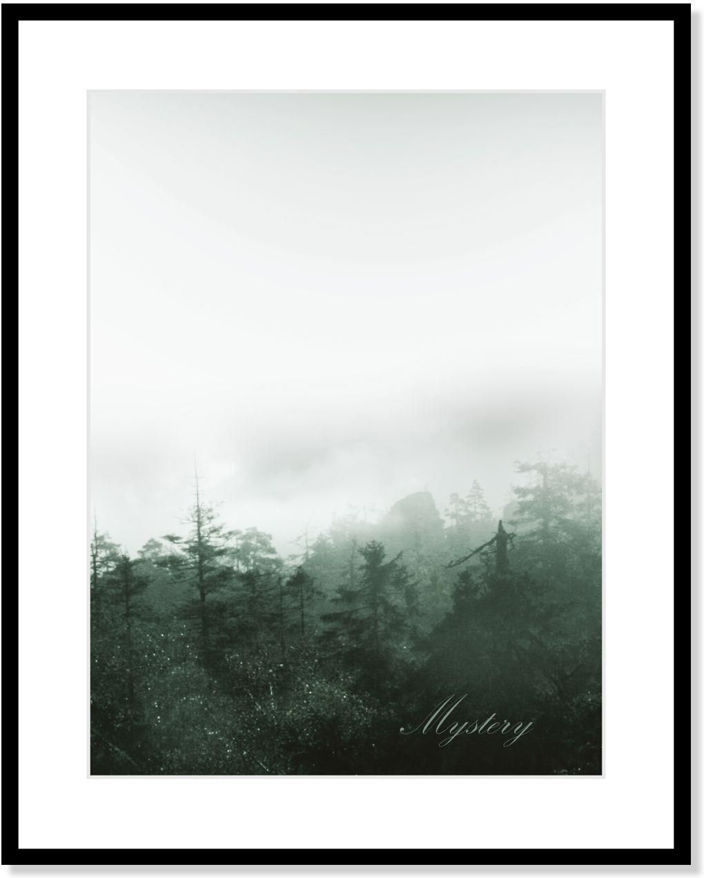 Obraz Mystery 40x50cm , 40x50cm Kod produktu: 183-043-00 Stylowy obraz z kojącym widokiem zamglonego lasu. Wyróżnia się subtelnością i tajemniczym charakterem. Zdjęcie utrzymane w zielonej tonacji ozdobione zostało białym passe partout, które nadaje obrazowi elegancji. Oprawiony w czarną wąską …