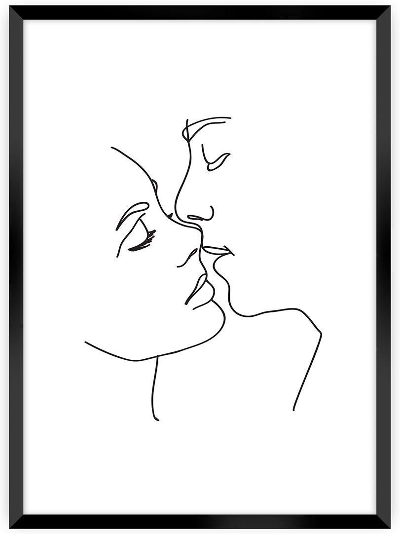 Minimalistyczny plakat przedstawiający dwie osoby zbliżające się do pocałunku.Delikatne i proste linie obrazu tworzą motyw pełen uczuć- budzi emocje i skłania do refleksji. Będzie perfekcyjnie wyglądał powieszony w sypialni czy salonie. Doskonały pomysł na prezent.Grafika wydrukowana została na papierze satynowym bez połysku o gramaturze 200g.Plakat można kupić bez ramki, jednak dla uzyskania lepszego efektu dobierz pasującą ramkę. Pozwoli Ci to na stworzenie kompletnej galerii na ścianie.W naszej ofercie posiadamy ramki w kolorze: białym, czarnym, srebrnym i złotym. Ramki dostępne są w pięciu rozmiarach. Rozmiary 21x30cm, 30x40cm, 40x50cm wykonane są z tworzywa sztucznego. Rozmiary 50x70cm i 70x100cm wykonane są z aluminium.