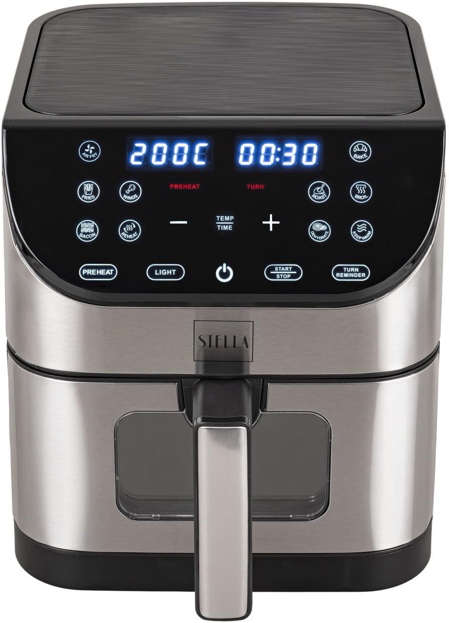 FRYTKOWNICA FRYTOWNICA STELLA BEZTŁUSZCZOWA PIEKARNIK AIR FRYER 1500W 6L Nowy, zdrowszy standard domowego gotowania Frytkownica beztłuszczowa Stella STAF-1500-6-IX to kompaktowe, a zarazem zaskakująco wydajne urządzenie, które pozwala na przygotowanie szerokiej gamy potraw bez użycia tłuszczu. Jej uniwersalny charakter wynika z połączenia 6-litrowej komory, mocy 1500 W, technologii cyrkulacji powietrza 360° oraz 8 automatycznych programów gotowania, które dopasowane są do codziennych potrzeb użytkownika. 6 litrów pojemności – komfort gotowania bez ograniczeń Zastosowanie komory o pojemności 6 litrów daje użytkownikowi swobodę przygotowywania większych porcji jedzenia, bez konieczności dzielenia składników na partie. Takie rozwiązanie doskonale sprawdzi się zarówno podczas codziennych posiłków, jak i w trakcie spotkań rodzinnych czy wizyt gości. Można bez problemu zmieścić w niej frytki, udka z kurczaka, warzywa czy zapiekanki, a wszystko to w jednym cyklu pracy. Co ważne, urządzenie zachowuje przy tym kompaktowe rozmiary, które nie dominują przestrzeni kuchennej. Najważniejsze cechy produktu ✅ Pojemność 6 litrów umożliwia przygotowanie większych porcji bez konieczności dzielenia składników. ✅ Moc 1500 W gwarantuje szybkie nagrzewanie i równomierną pracę urządzenia. ✅ Technologia obiegu gorącego powietrza 360° zapewnia chrupiące i równomierne efekty bez oleju. ✅ 8 automatycznych programów ułatwia codzienne gotowanie i eliminuje potrzebę ustawiania parametrów. ✅ Dotykowy panel LED pozwala na intuicyjne sterowanie wszystkimi funkcjami. ✅ Zakres temperatury 80–200°C dostosowuje się do różnorodnych potraw. ✅ Wbudowany timer do 60 minut umożliwia precyzyjne zaplanowanie czasu pracy. ✅ Nieprzywierająca powłoka znacząco ułatwia czyszczenie urządzenia. Osiem programów, które upraszczają gotowanie Codzienne decyzje kulinarne stają się znacznie prostsze dzięki ośmiu wbudowanym programom automatycznym, które samodzielnie dobierają odpowiedni czas i temperaturę do typu potrawy. Niezależnie od tego, czy chcesz przygotować frytki, pieczone mięso, grillowany bekon czy po prostu odgrzać gotowe danie. Tryby takie jak rozmrażanie, suszenie czy podgrzewanie posiłków również zostały zaprojektowane z myślą o maksymalnej wygodzie użytkownika.