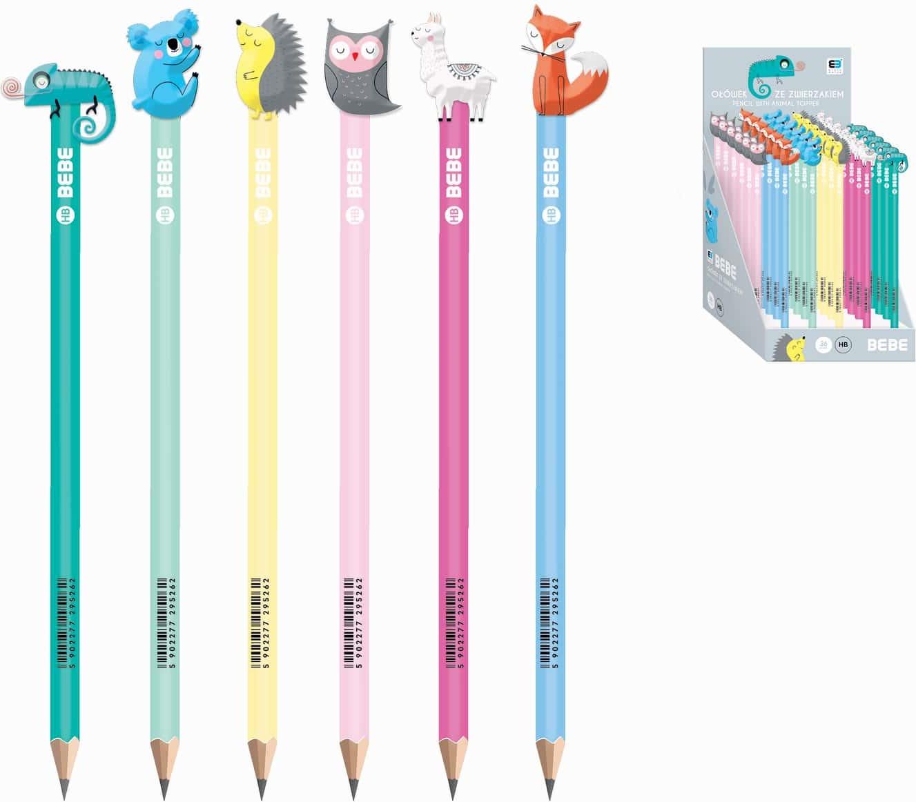 Ołówek HB. Okrągły profil. Ołówek zakończony figurką zwierzaka z serii BEBE. 6 wzorów do wyboru. MIX KOLORÓW! Prosimy o informację w komentarzu do zamówienia o wybranym kolorze produktu. W przypadku braku wybranego koloru wysyłamy kolor losowy.