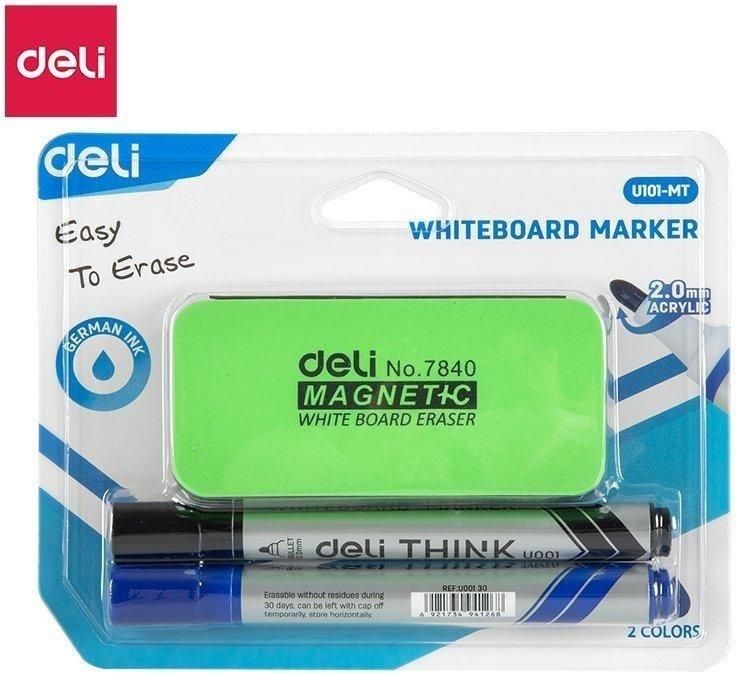 Szukasz kompletnego zestawu do pracy z tablicą suchościeralną? Mamy coś idealnego! Przedstawiamy Deli – praktyczny zestaw, który łączy w sobie wszystko, co niezbędne: dwa markery w najbardziej uniwersalnych kolorach (czarny i niebieski) oraz poręczną, magnetyczną gąbkę o wysokiej skuteczności …